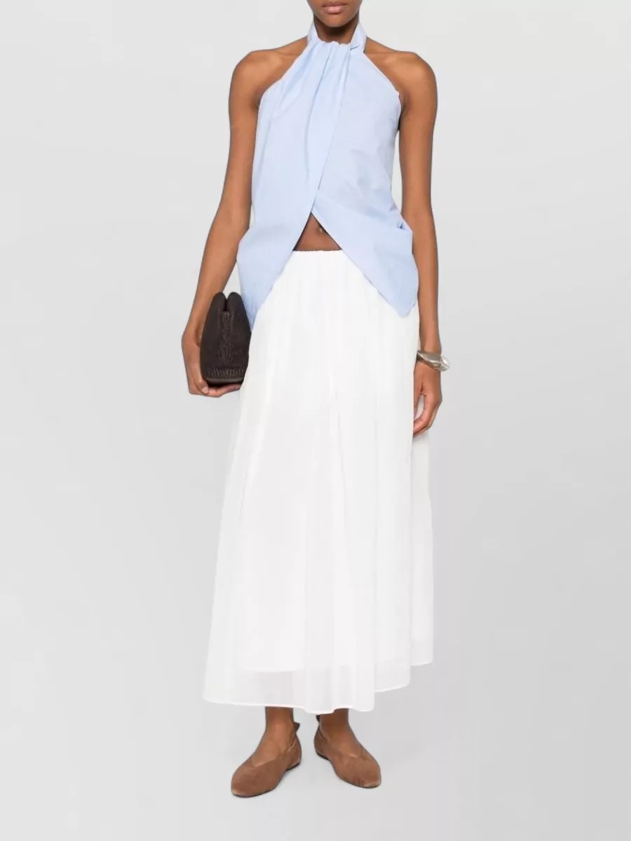 Brunello Cucinelli long flowing cotton skirt with sheer overlay