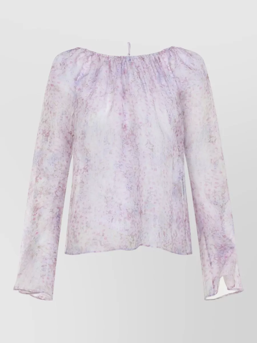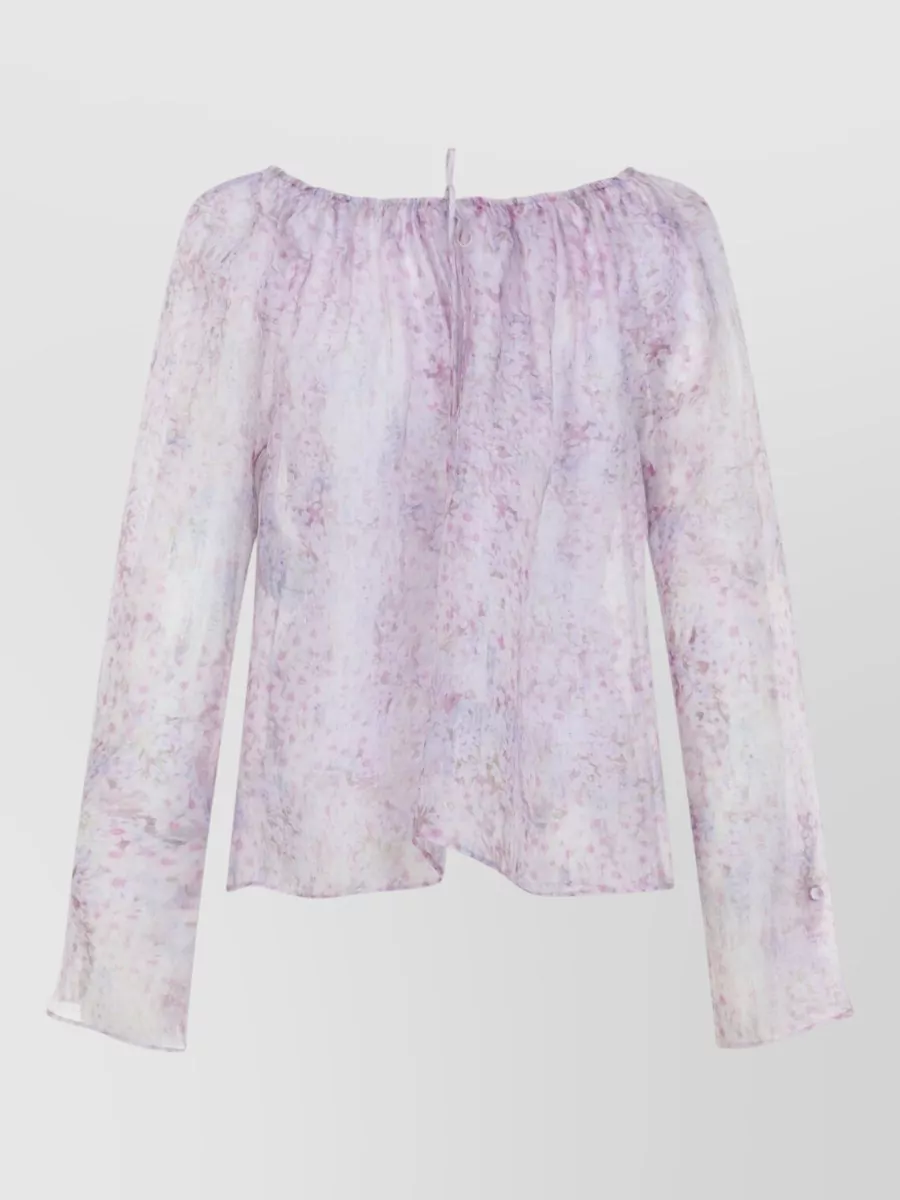 Alberta Ferretti organza blouse floral motif elastic neckline