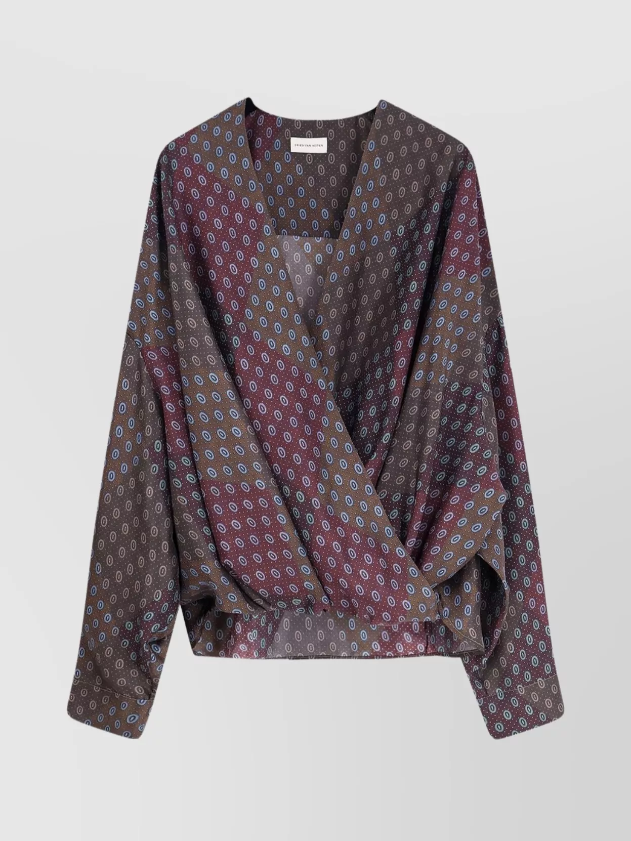 Dries Van Noten asymmetric hem long sleeve patterned top