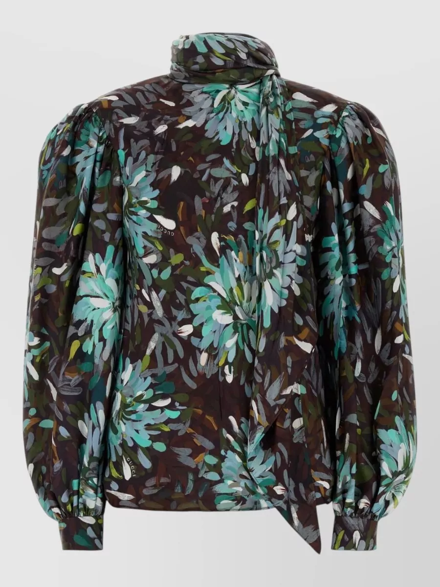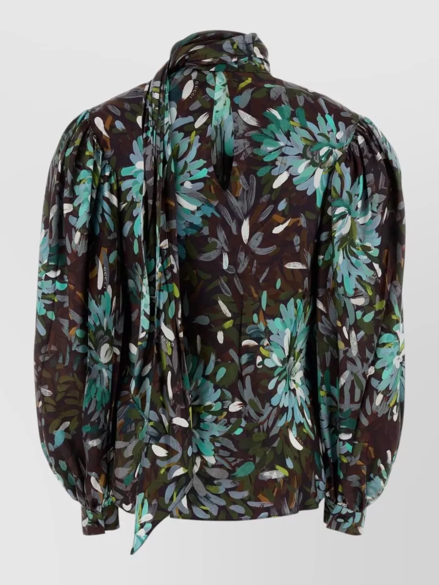 Gucci silk shirt with flora print and tie bow