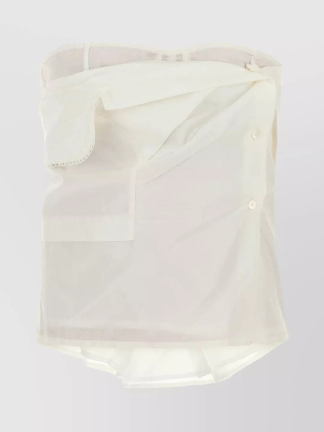 asymmetric strapless top featuring button accents