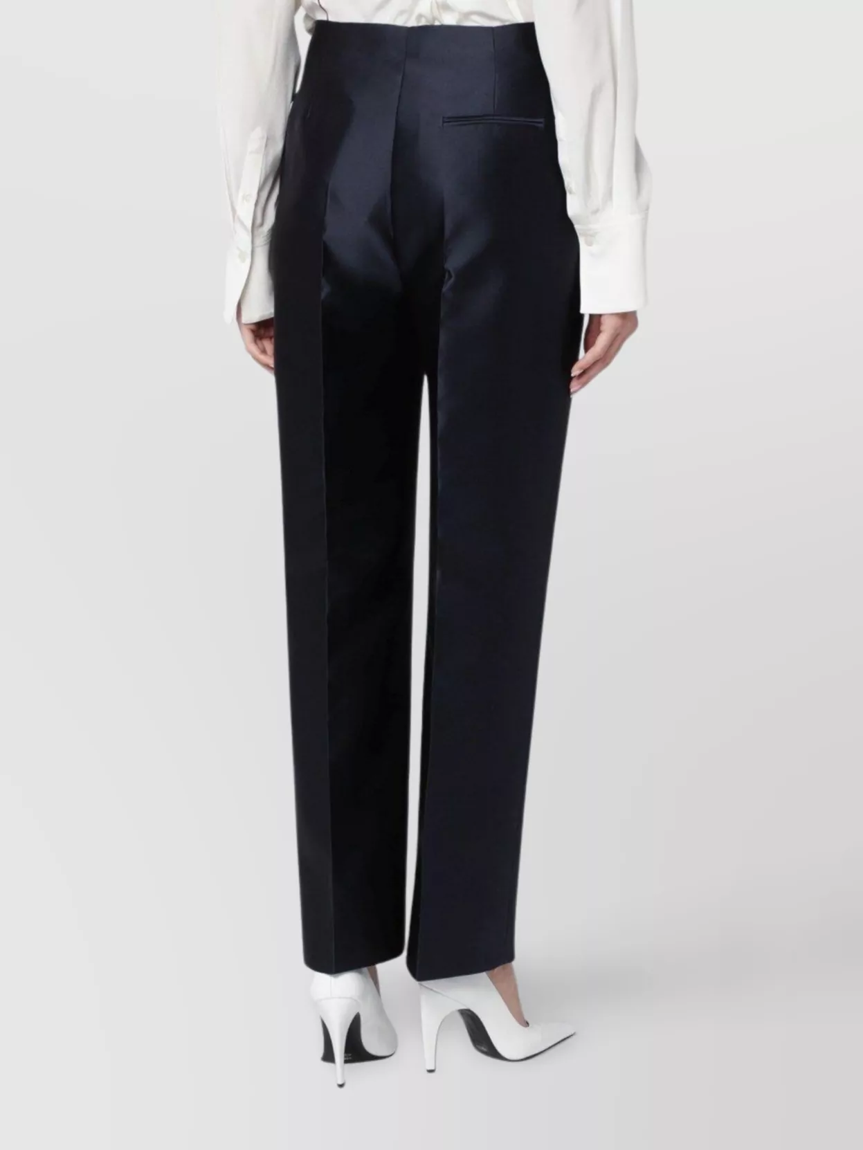 high-waisted tailored satin trousers