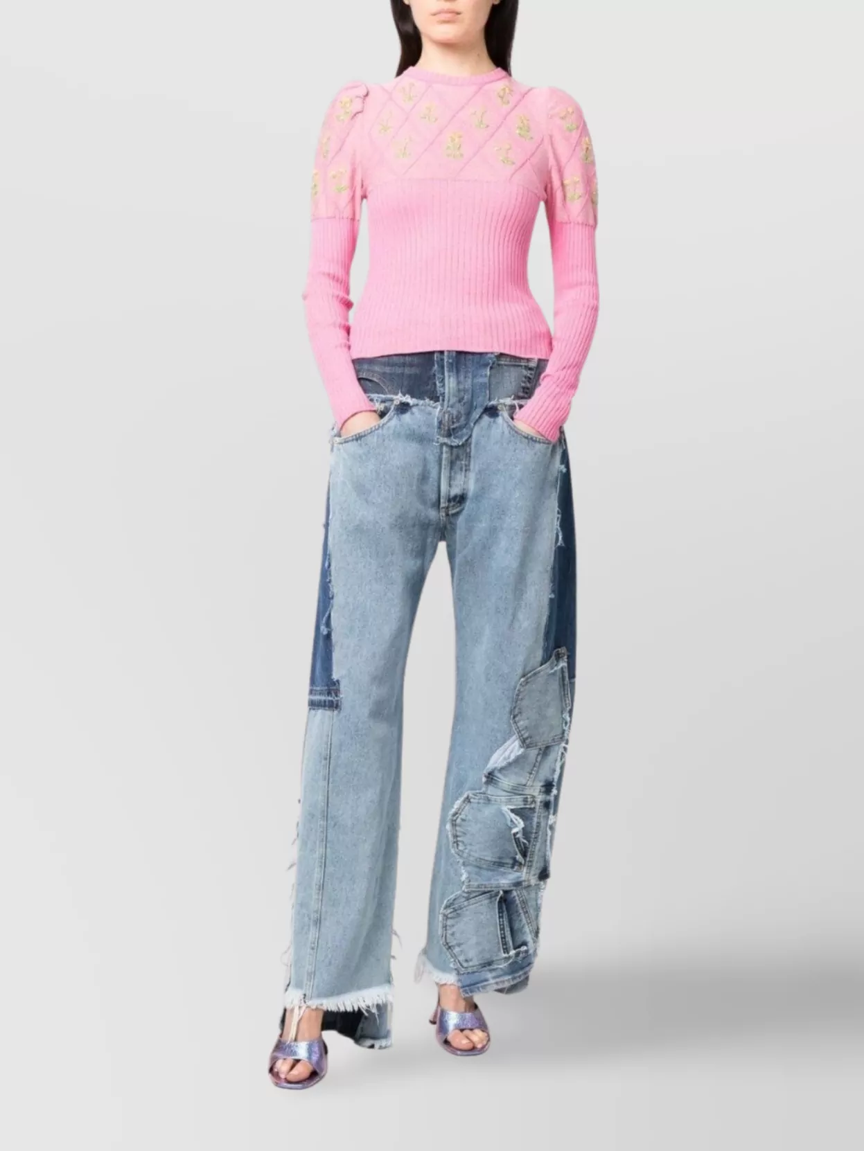 floral embroidered knitwear puff sleeves