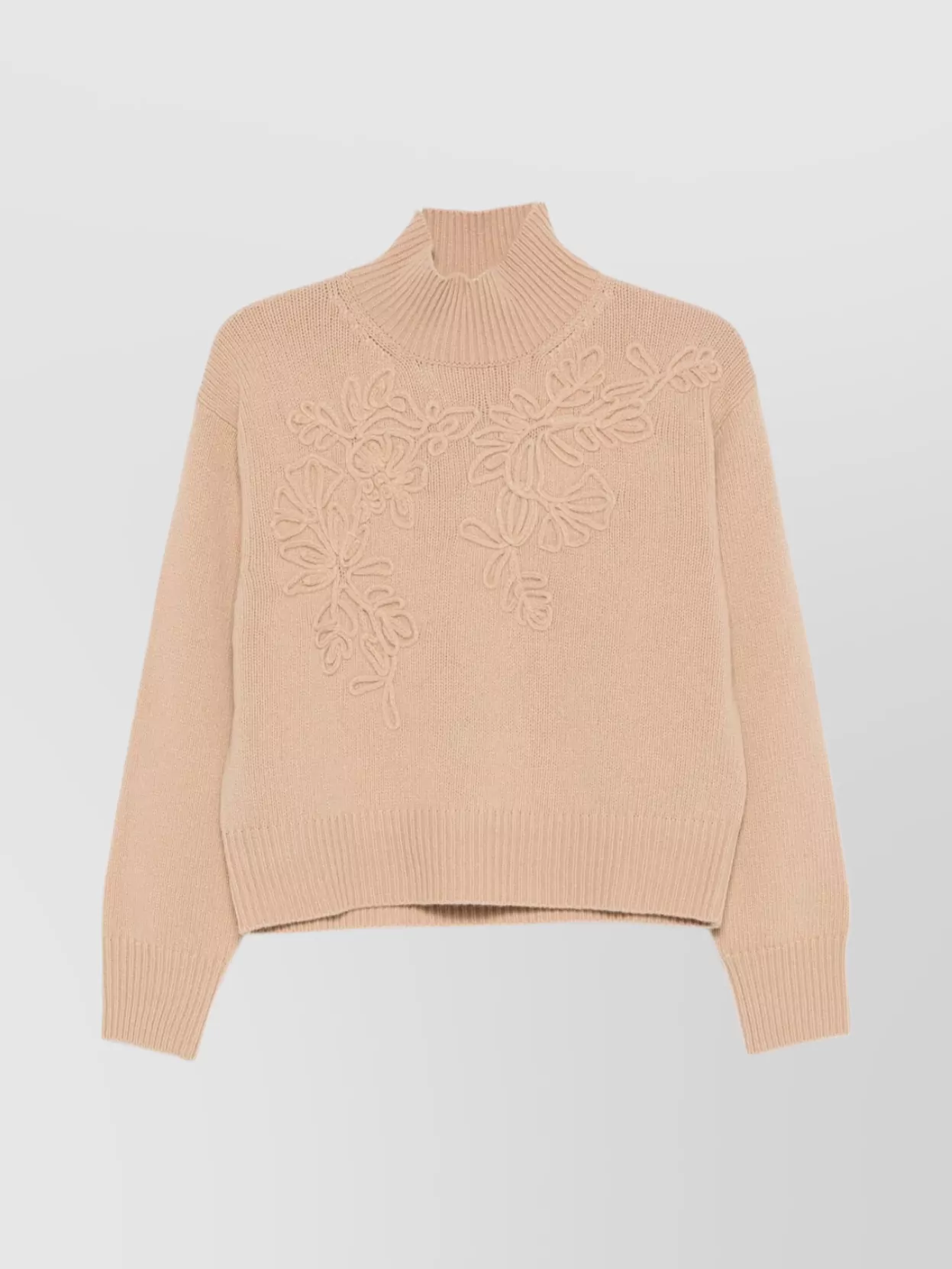 Ermanno Firenze high neck knitwear with embroidered ribbed hem