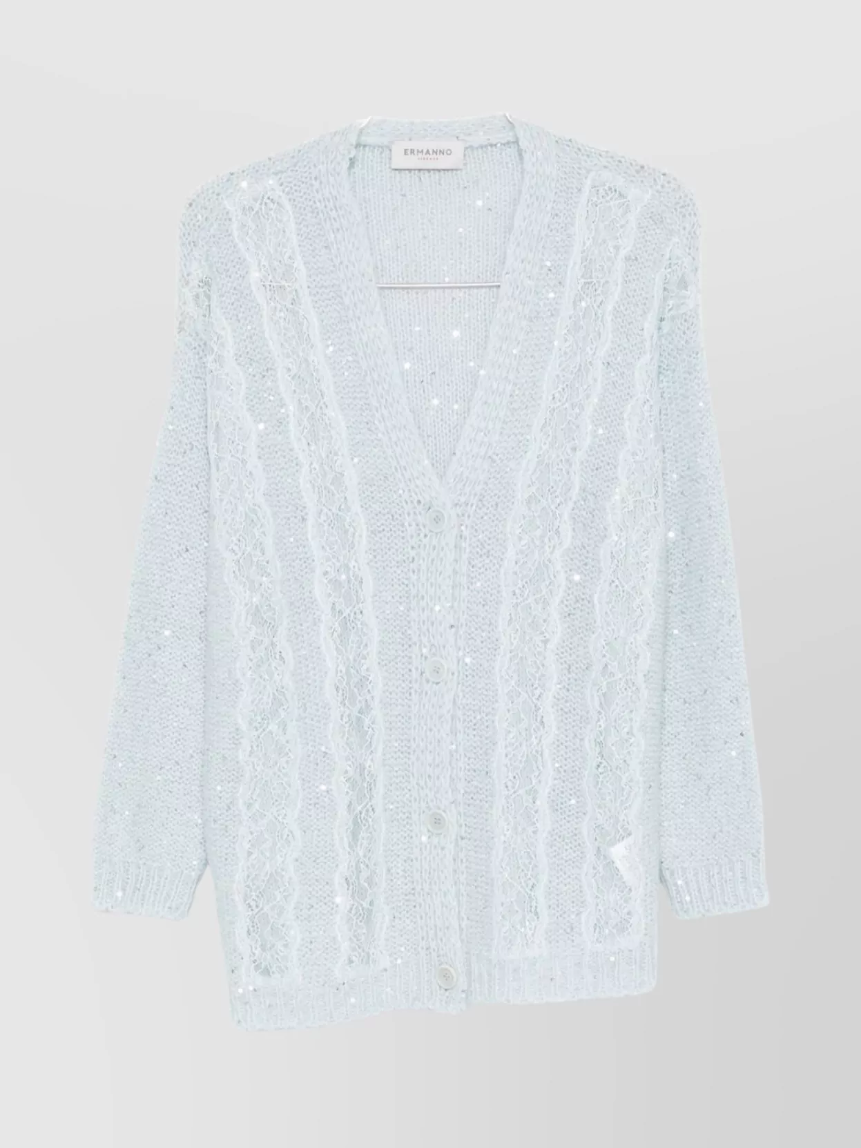 Ermanno Firenze cable knit cardigan with lace and sequins