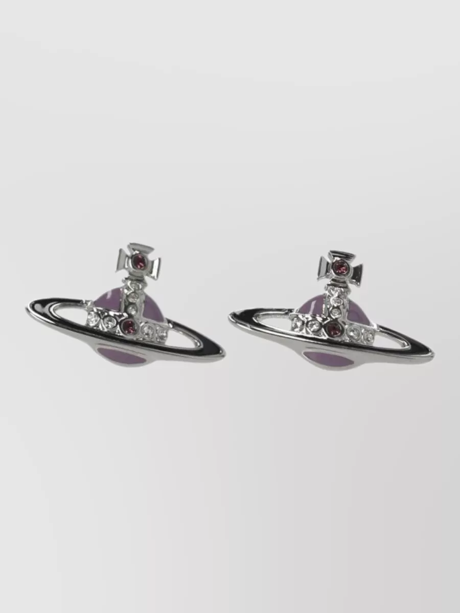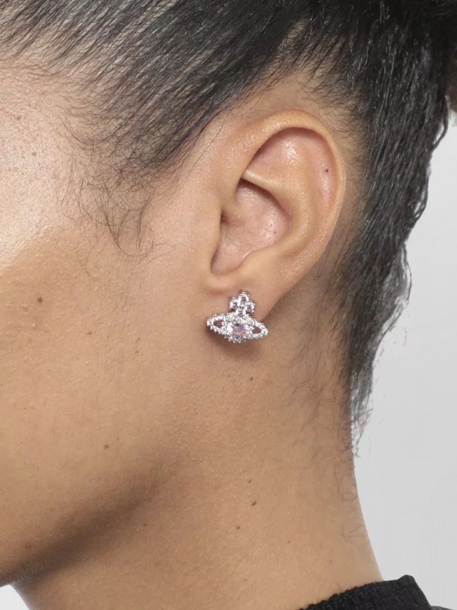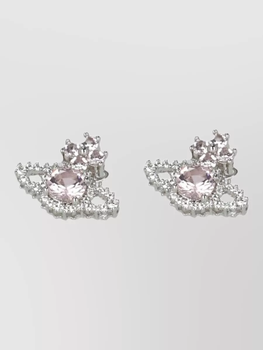Vivienne Westwood crystal gemstone stud earrings silver tone