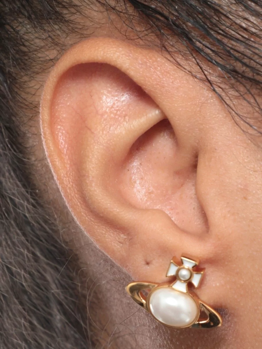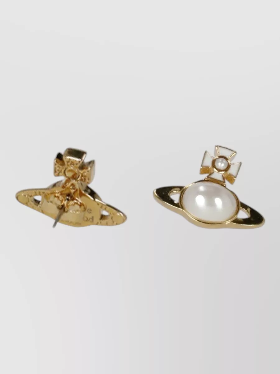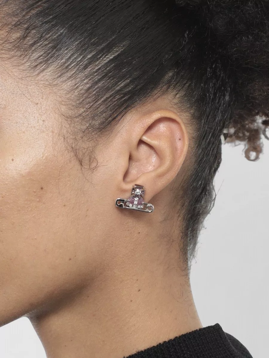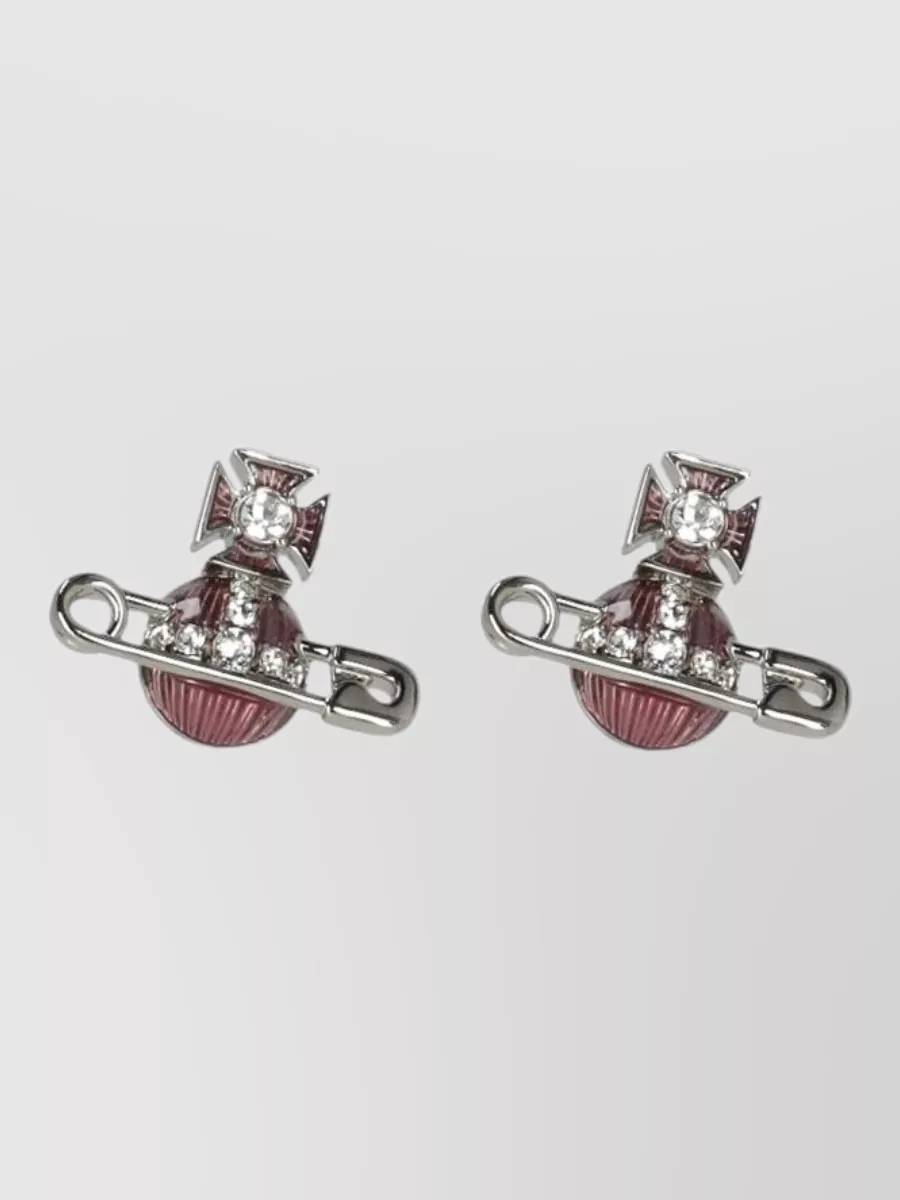 Vivienne Westwood crystal gemstone stud earrings silver tone