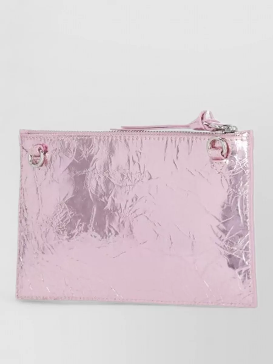 leather clutch metallic finish removable strap