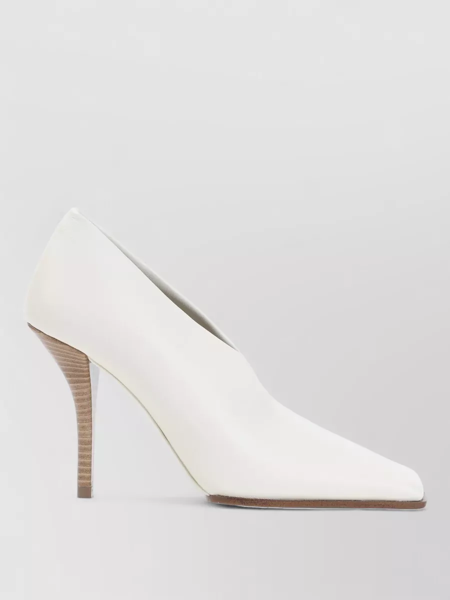 square toe block heel leather pumps
