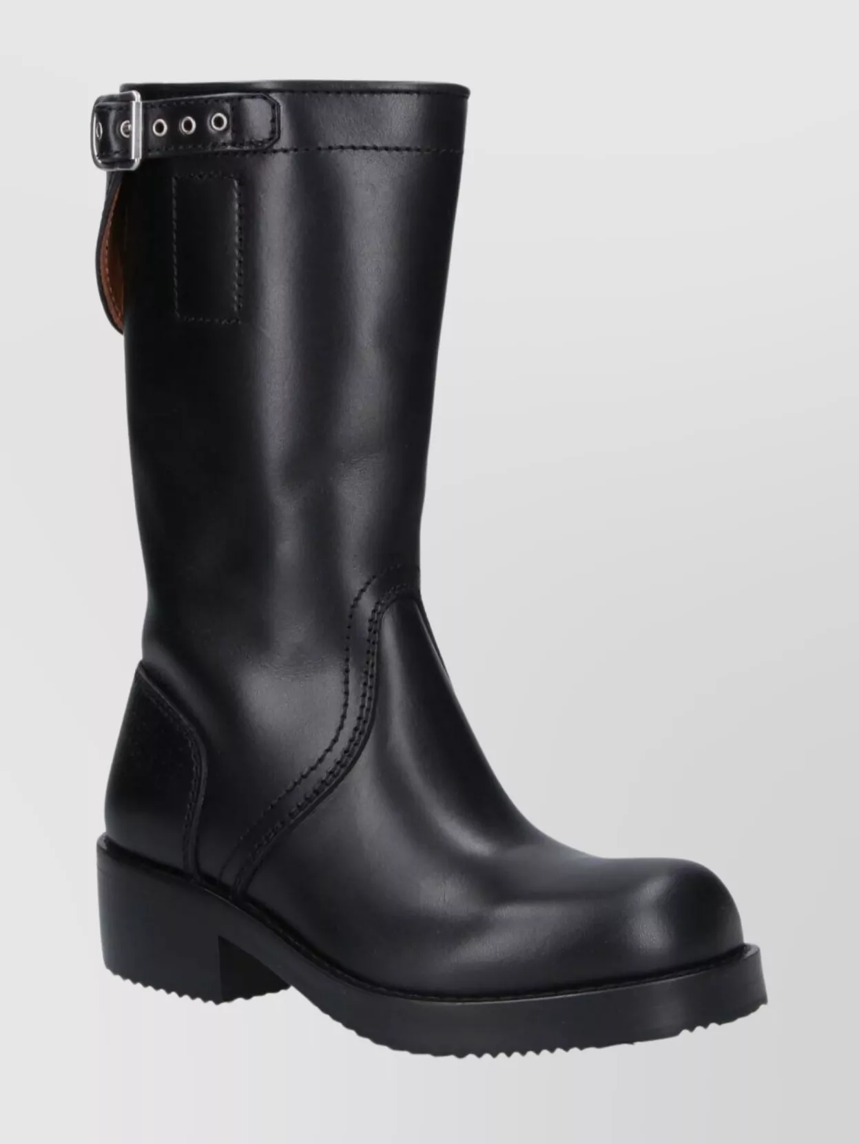 Dries Van Noten mid-calf block heel leather boots with buckle
