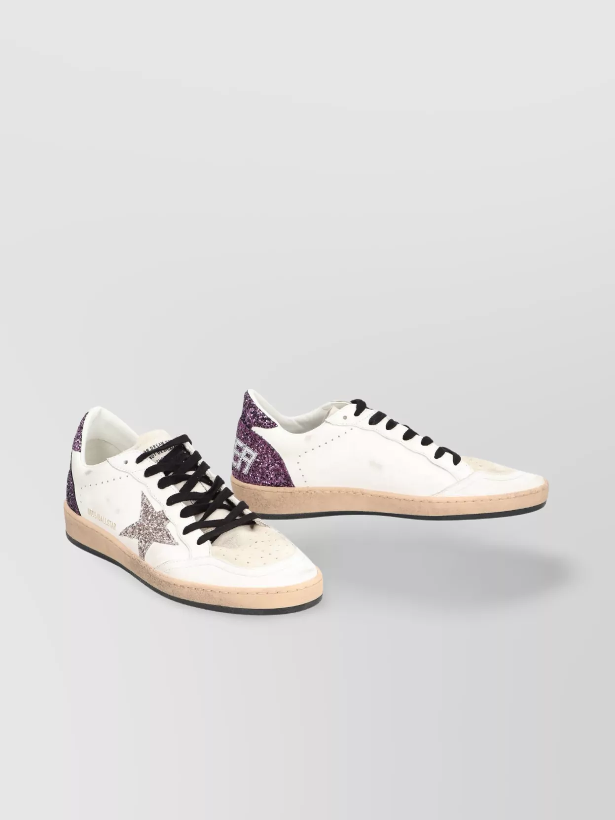 Golden Goose leather sneakers featuring glitter detailing and branded heel
