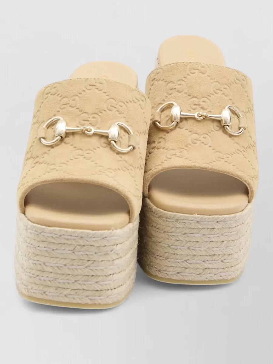 Gucci gg monogram suede wedge sandals morsetto