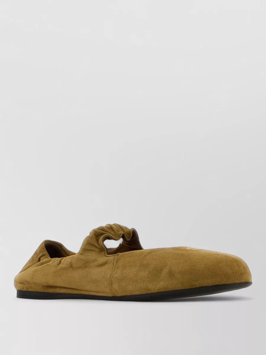 Flat ballerina style with elasticated trim for a secure, close fit around the foot