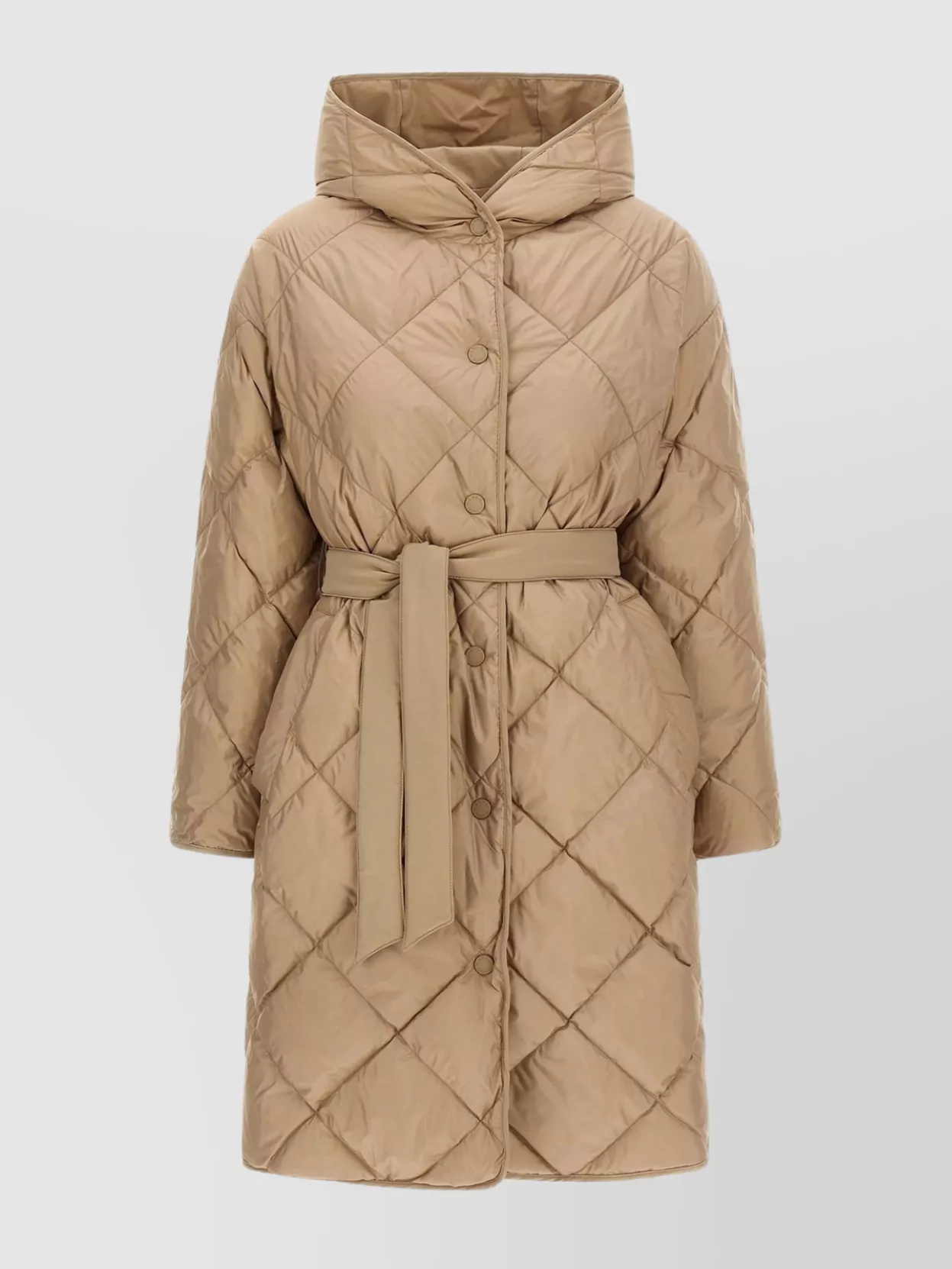 Weekend Max Mara long quilted coat belted waist hood