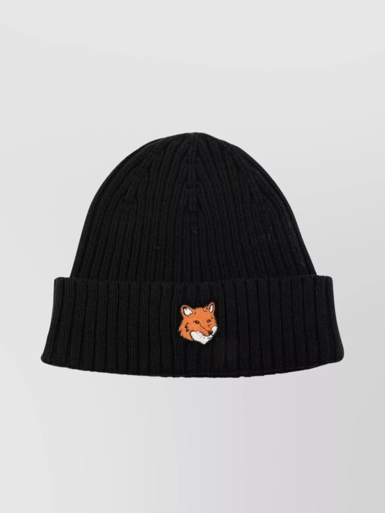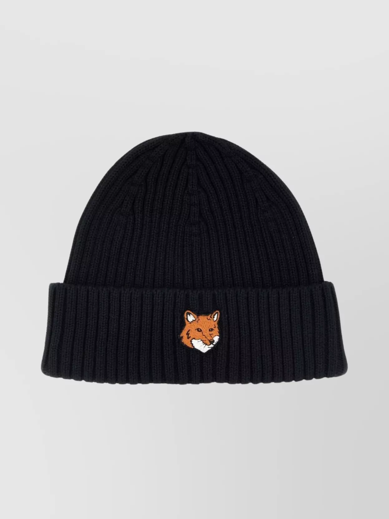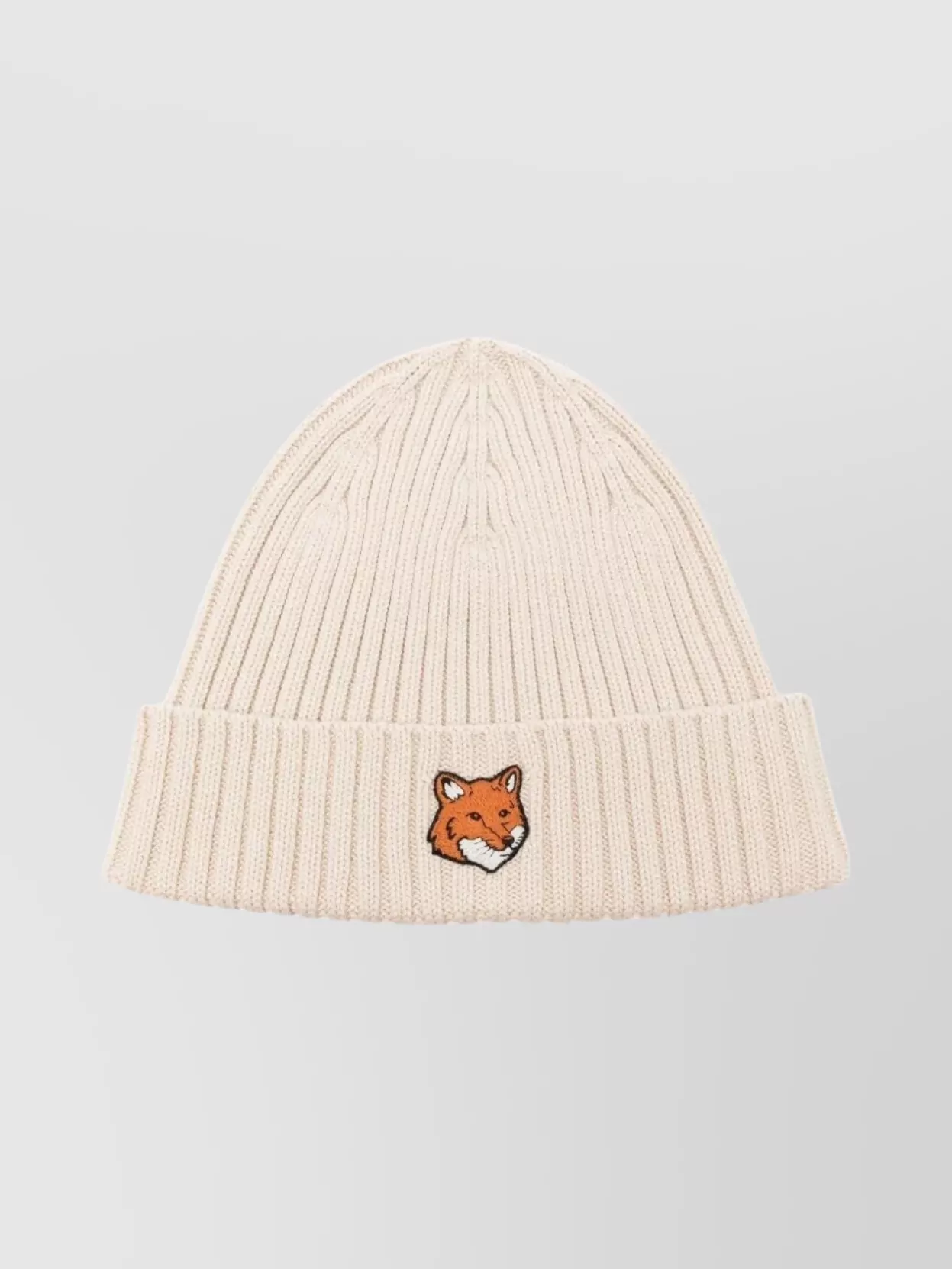 Maison Kitsuné cotton beanie with fox patch and turn-up brim