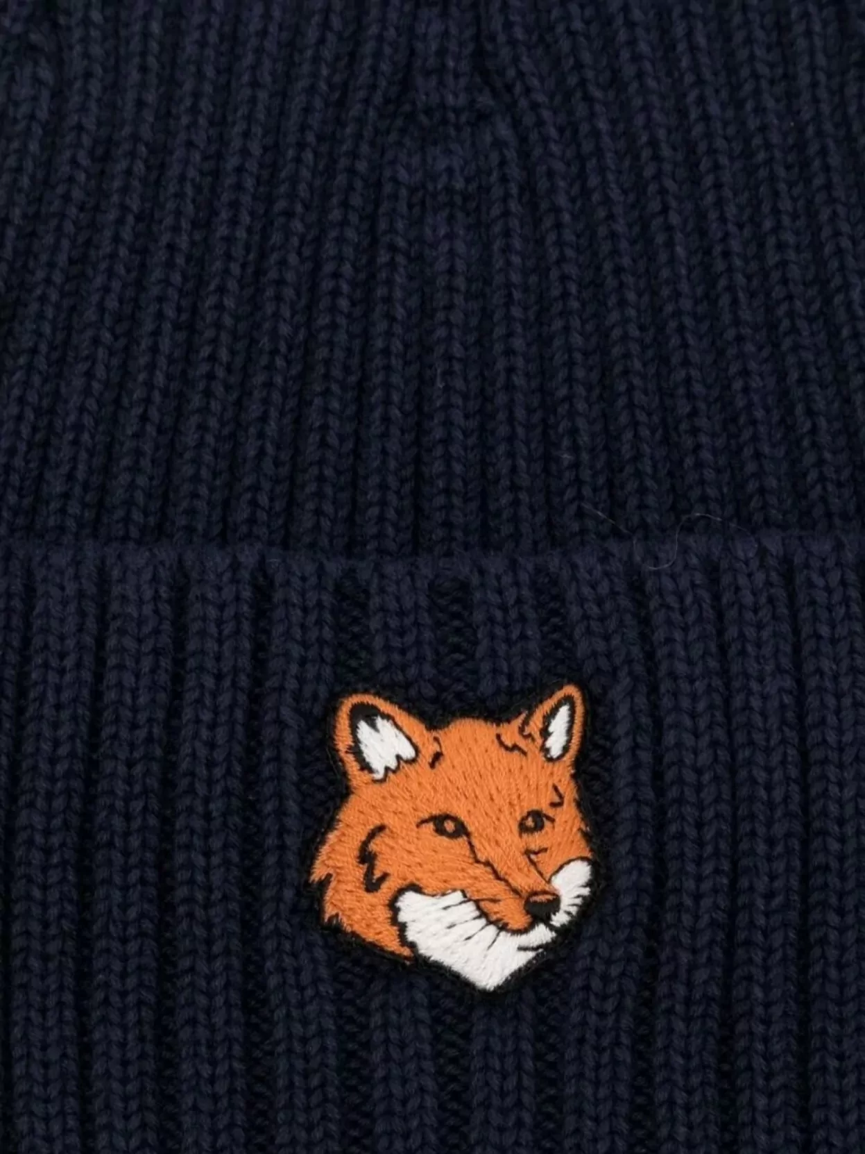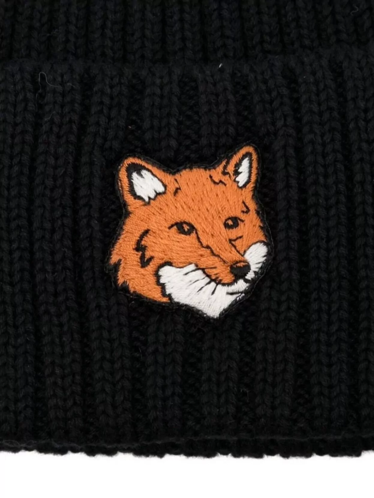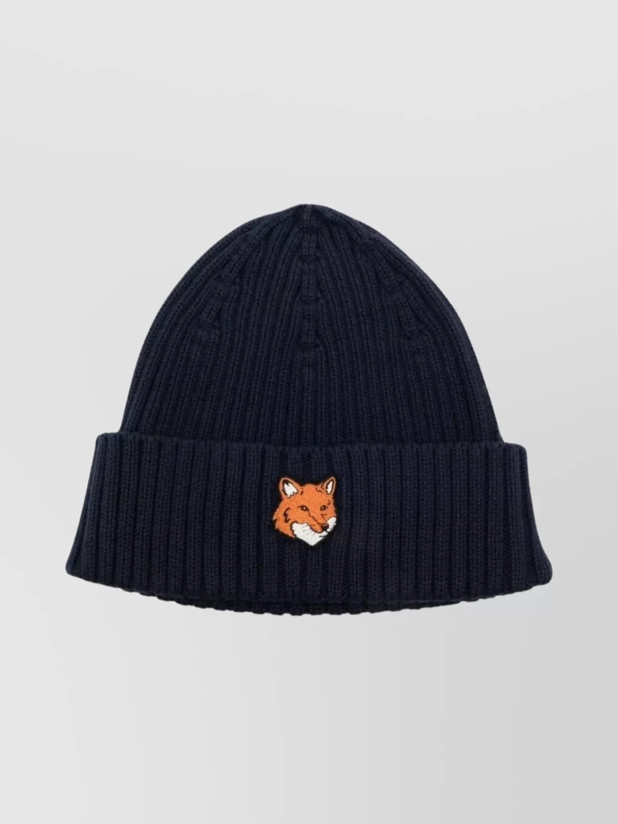 Maison Kitsuné cotton beanie with fox patch and turn-up brim