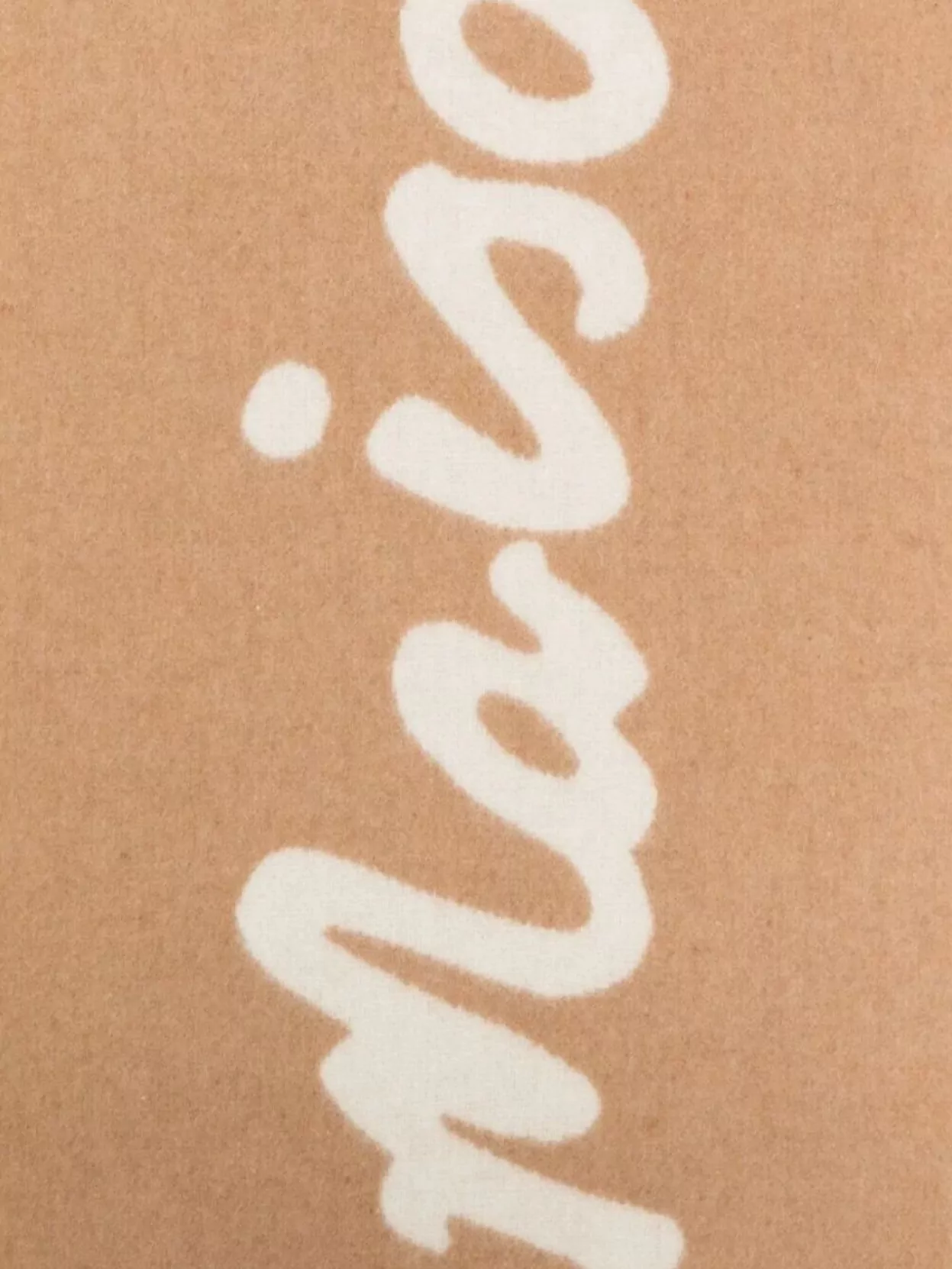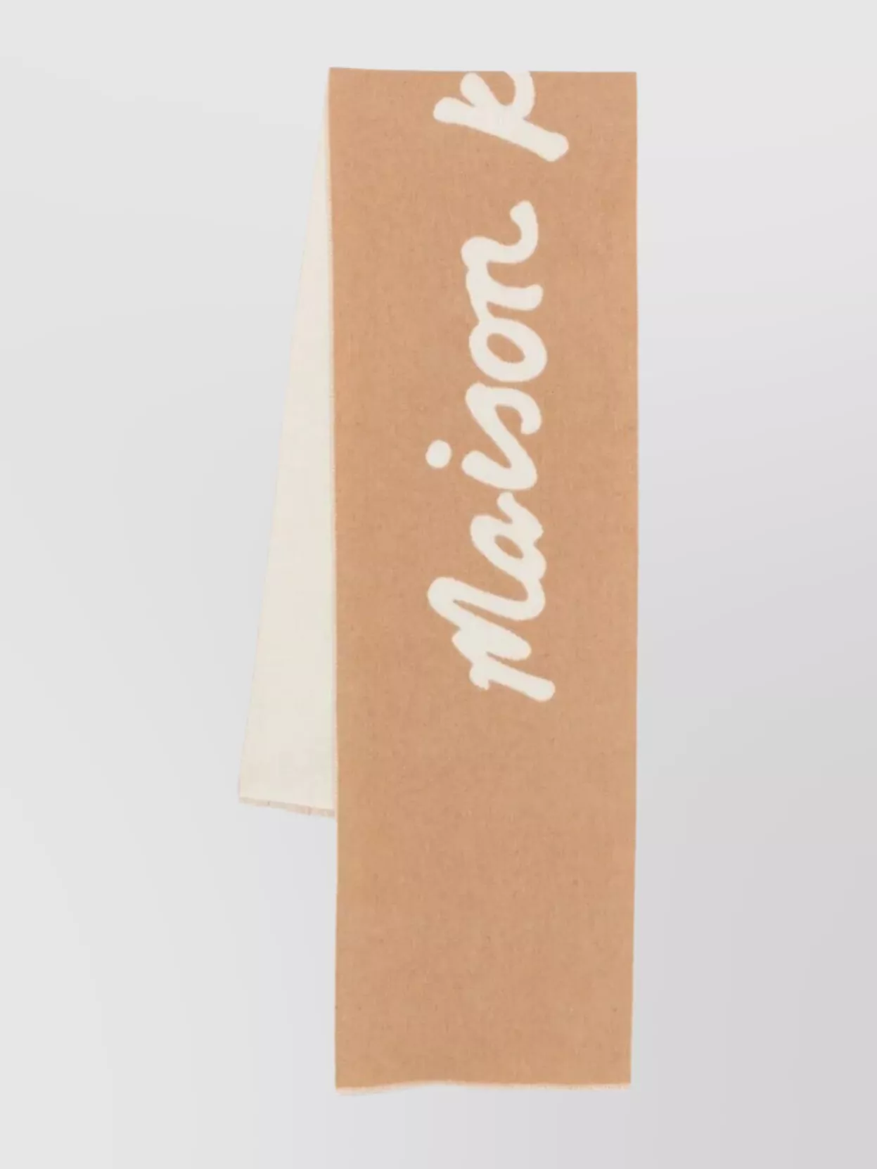 Maison Kitsuné wool scarf with embroidered detail and fringed ends