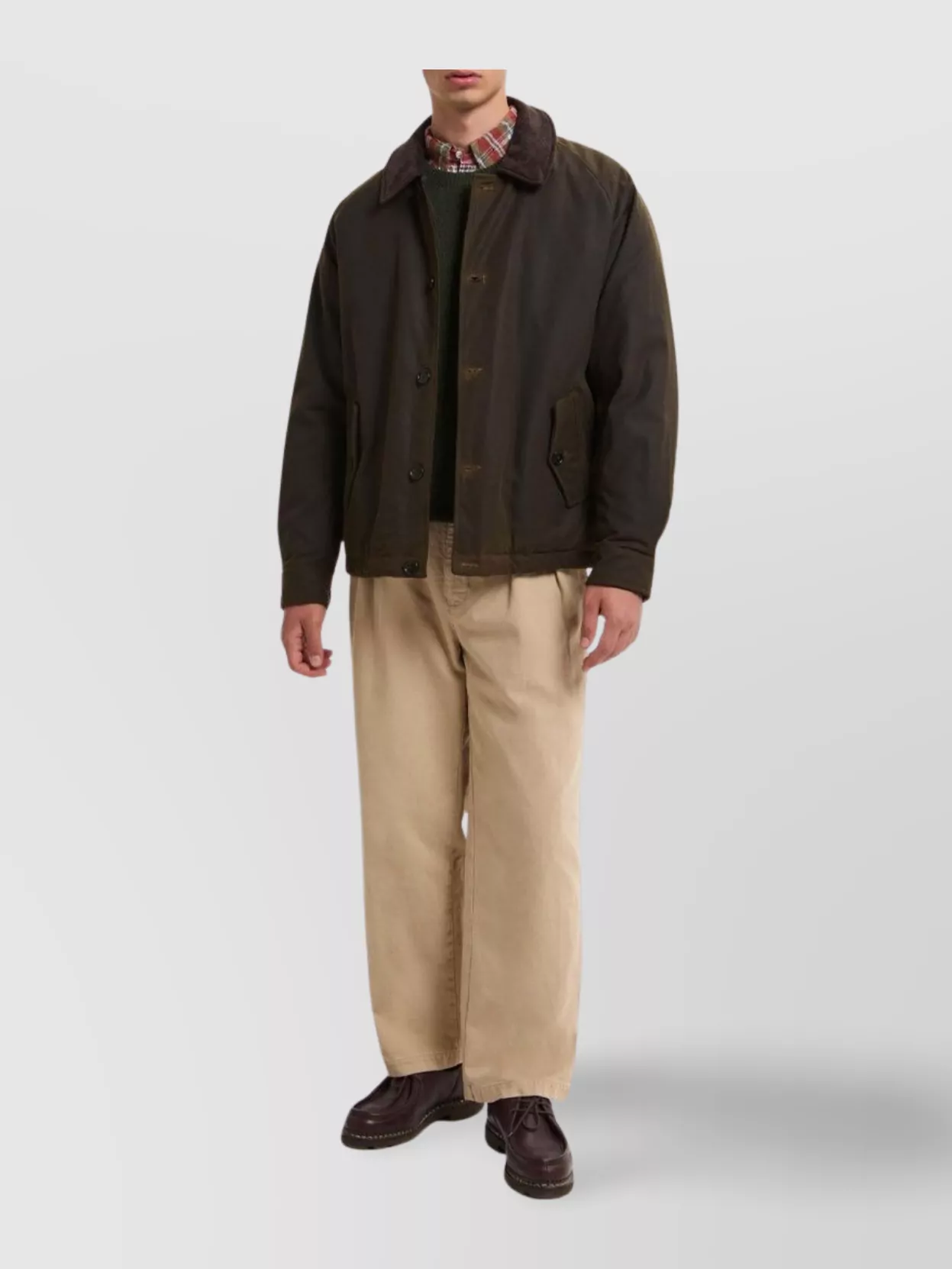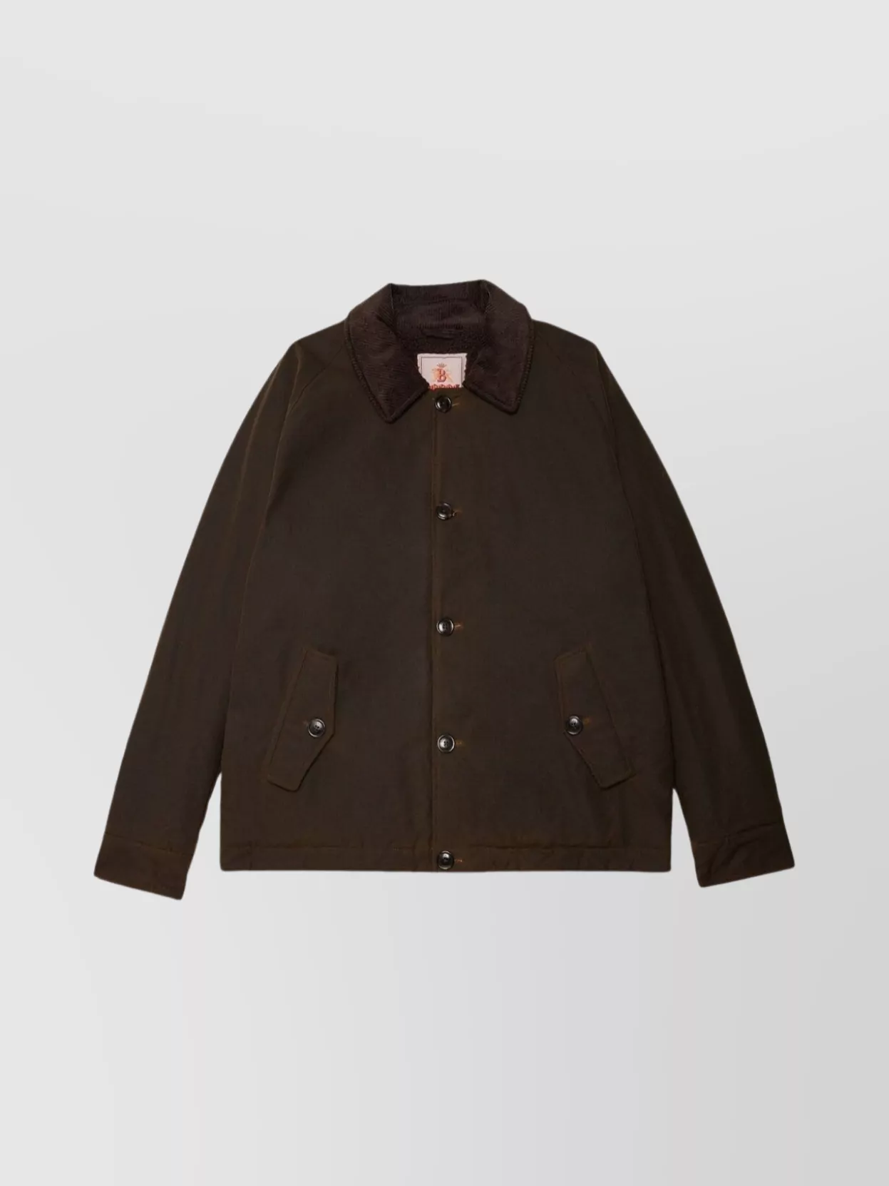 Baracuta collar buttoned jacket ribbed cuffs pockets