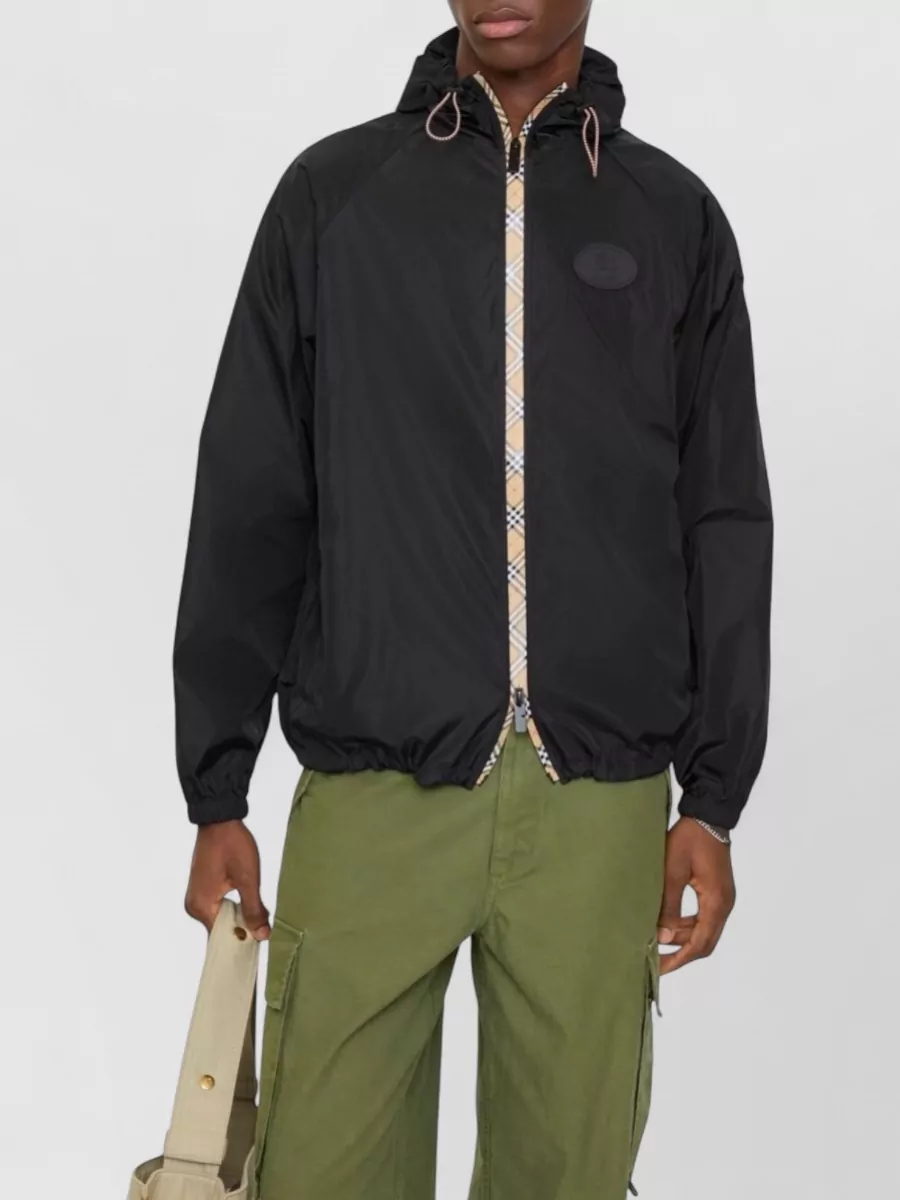 Burberry nylon jacket featuring hood and elastic cuffs
