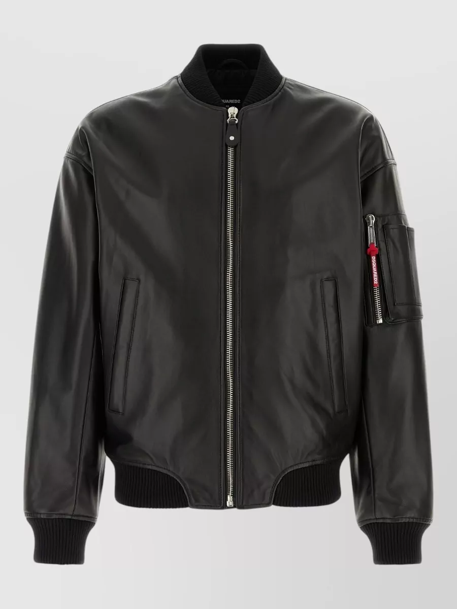 Dsquared2 leather jacket front pockets ribbed cuffs