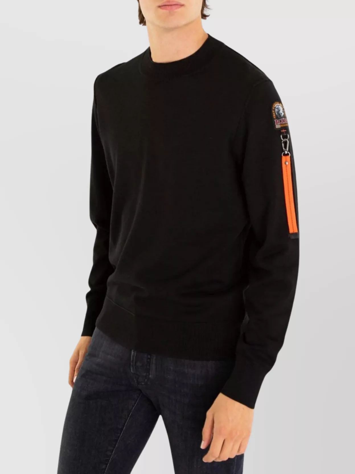 Parajumpers arm patch crew neck sweater with ribbed cuffs