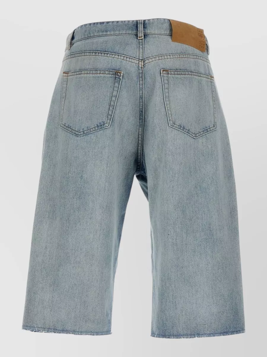Mm6 Maison Margiela denim shorts straight cut belt loops five pockets raw hem
