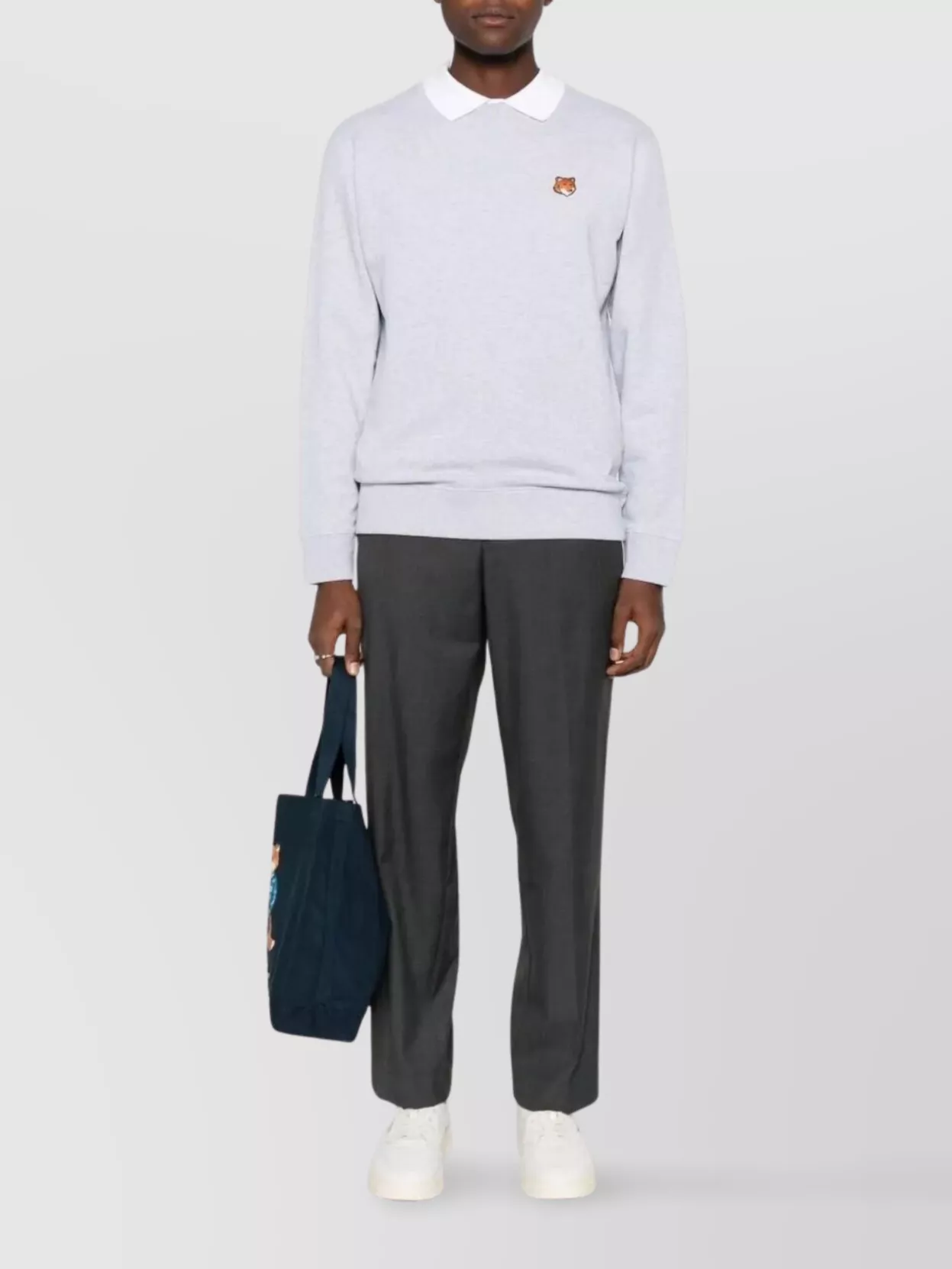 crew-neck cotton sweatshirt fox patch