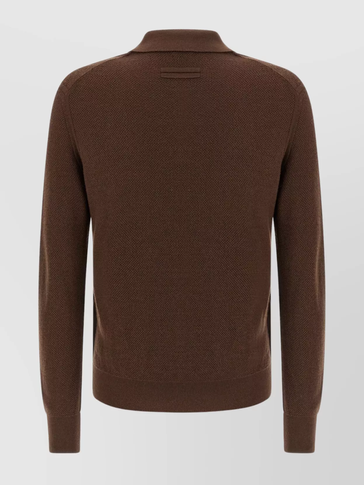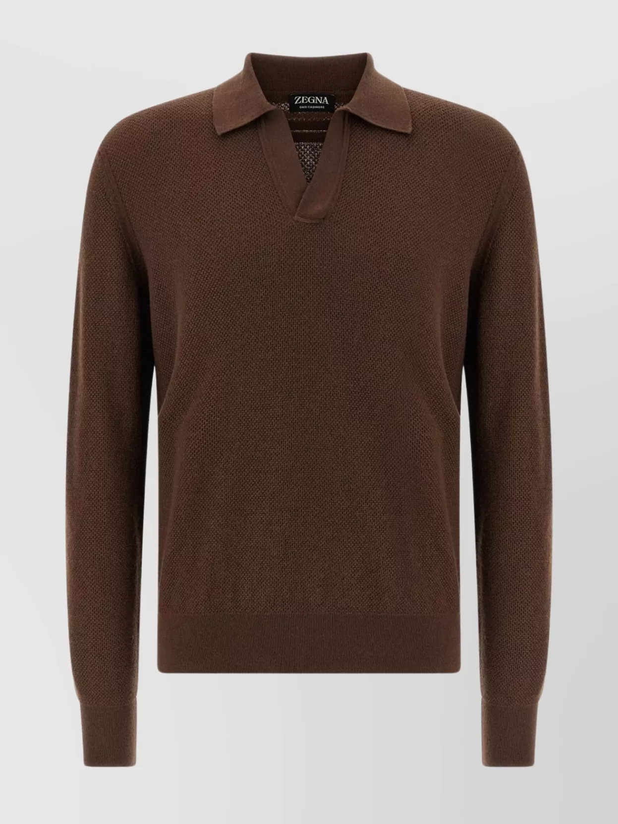 Zegna cashseta knit polo with ribbed cuffs and hem