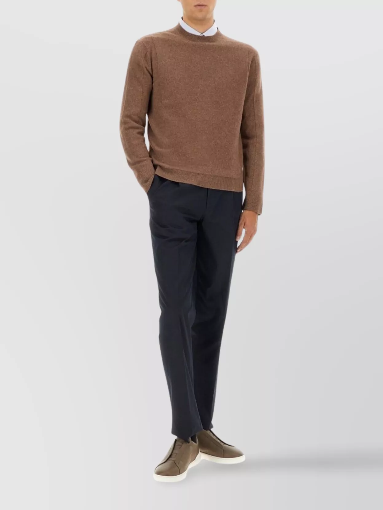 Zegna soft cashmere crewneck sweater with ribbed cuffs and hem