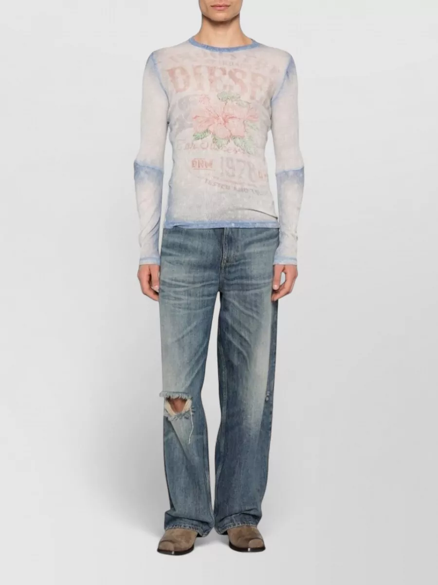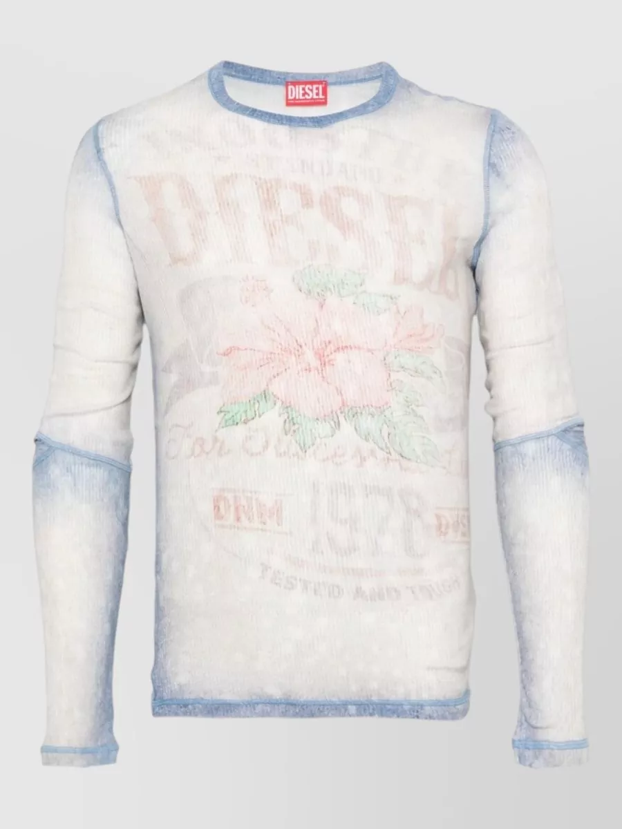 Diesel crew neck long sleeve sheer graphic t shirt