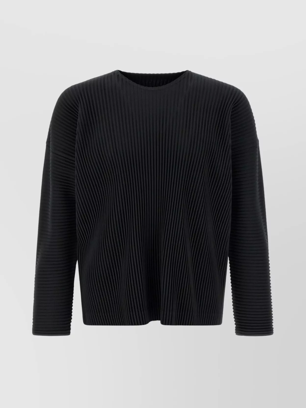 Homme Plisse Issey Miyake crew neck sweater with pleated texture and ribbed cuffs