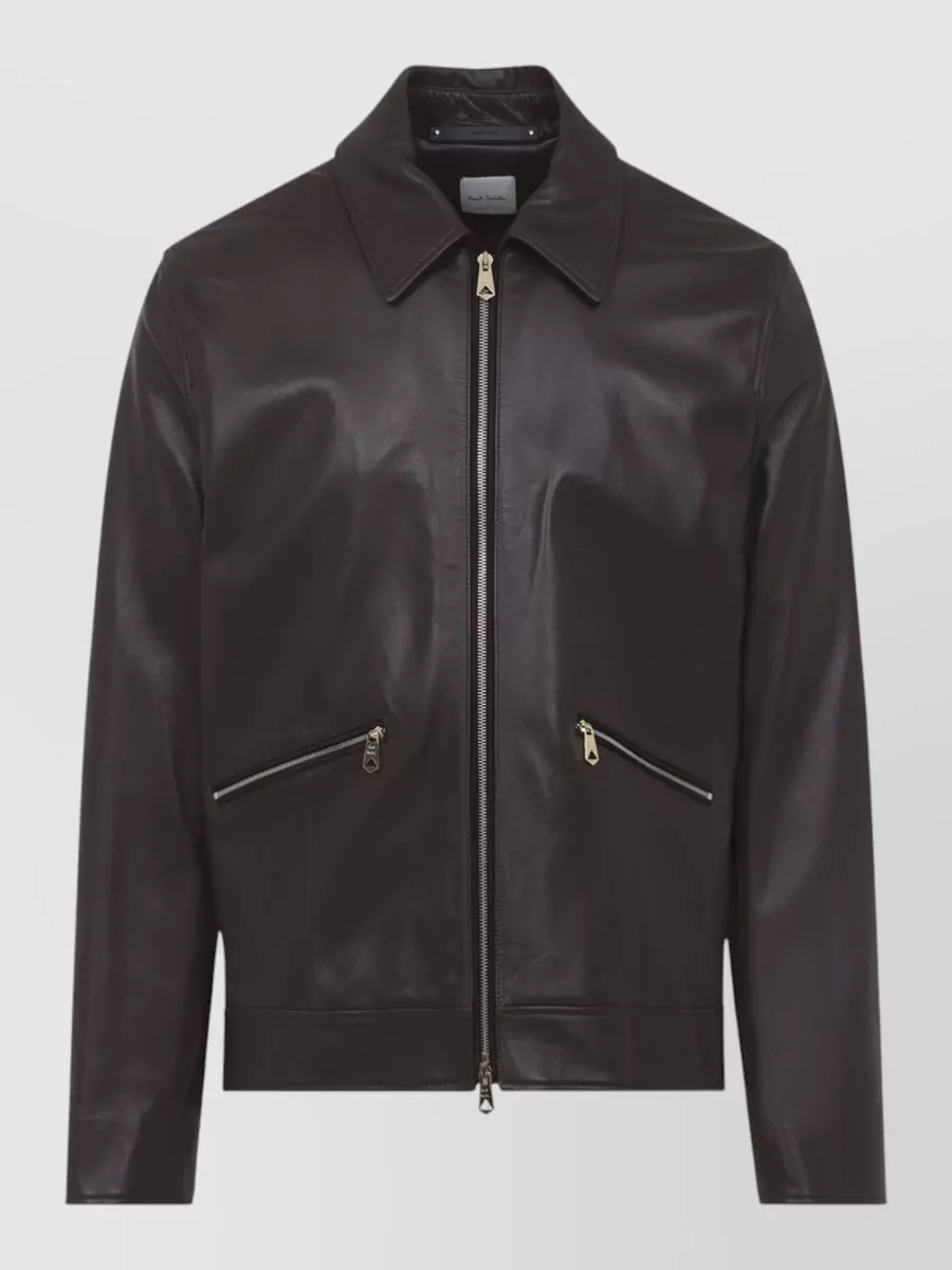 Paul Smith regular fit leather jacket collared design