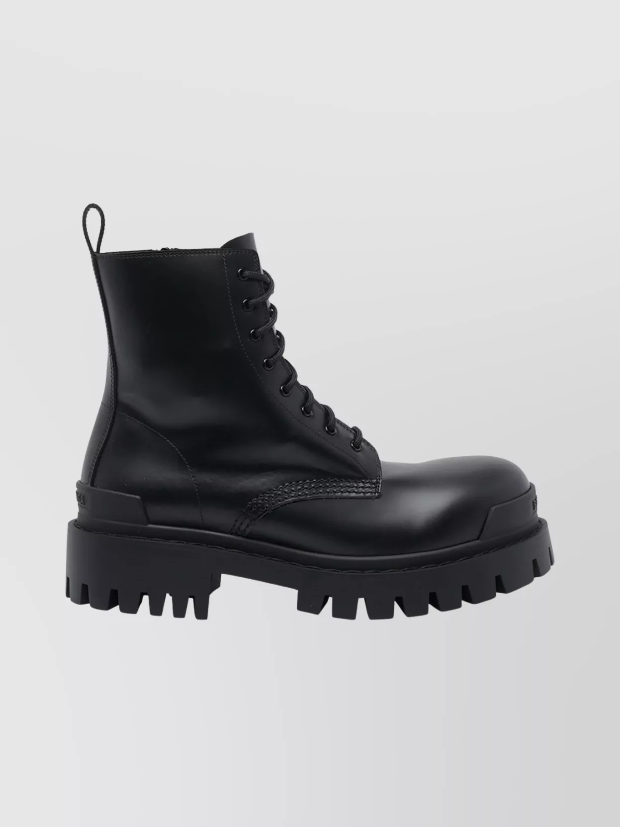 Balenciaga trooper rubber boots with lug sole and flared heel