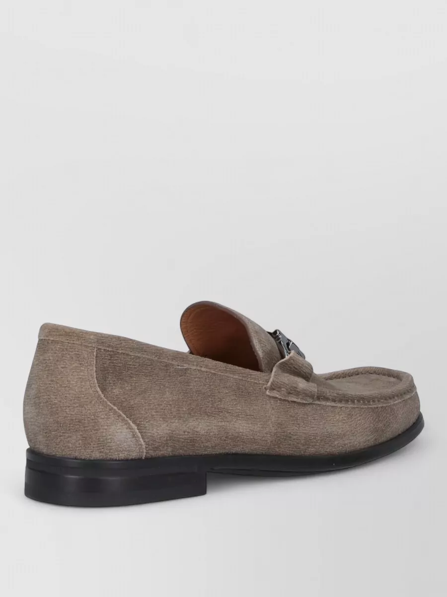 Ferragamo loafers round toe suede metallic buckle