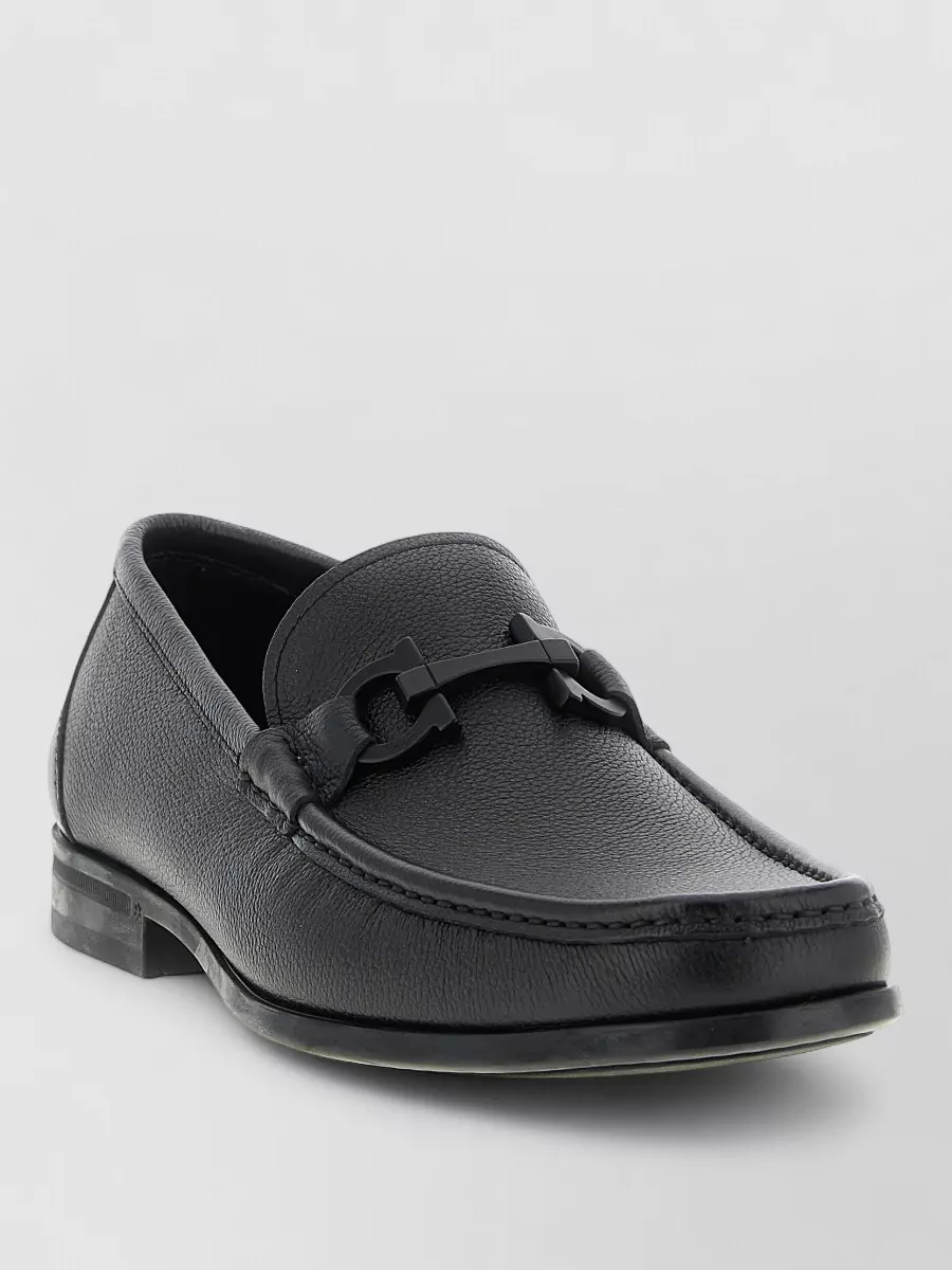 Ferragamo buckle detail leather sole round toe loafers