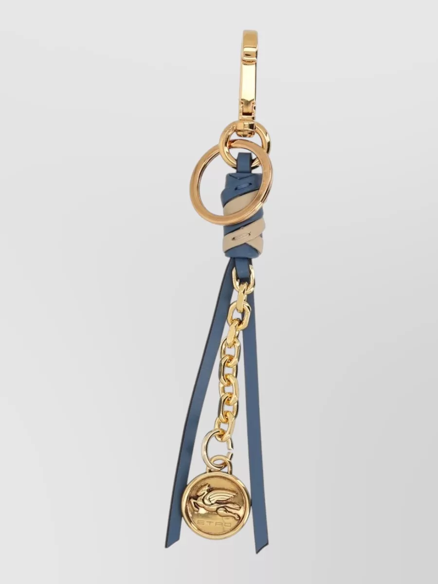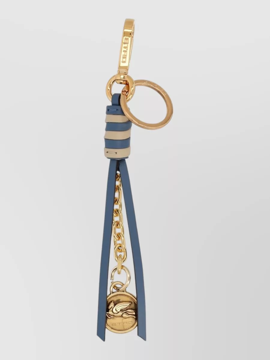 Etro leather tassel keyring featuring chain hardware