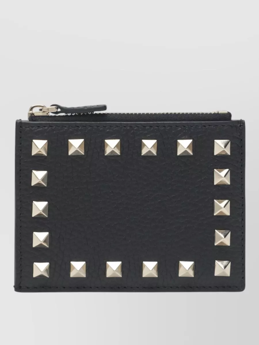 Valentino leather rockstud zip card holder