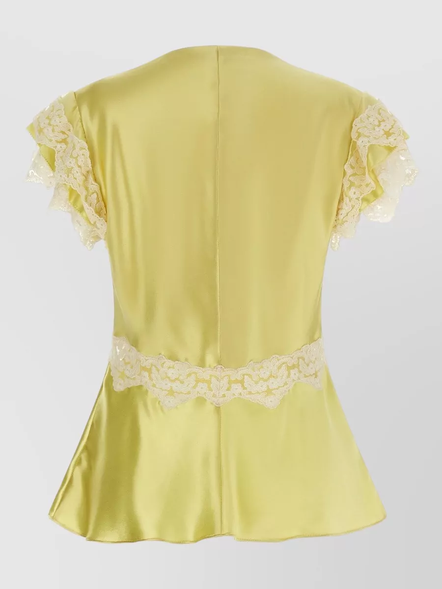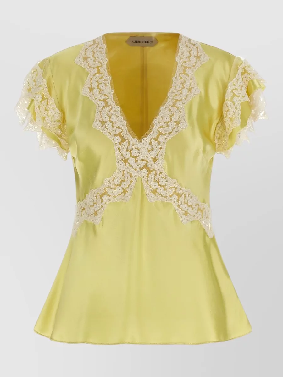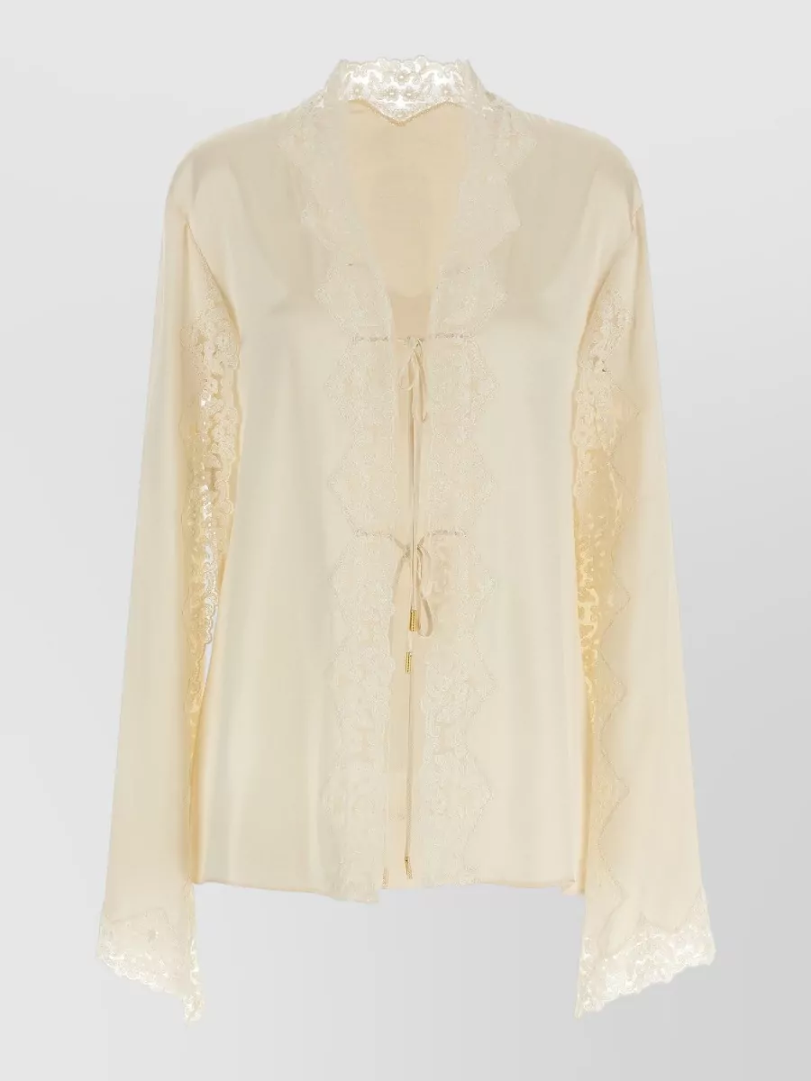 Alberta Ferretti lace trim satin long sleeve tie shirt