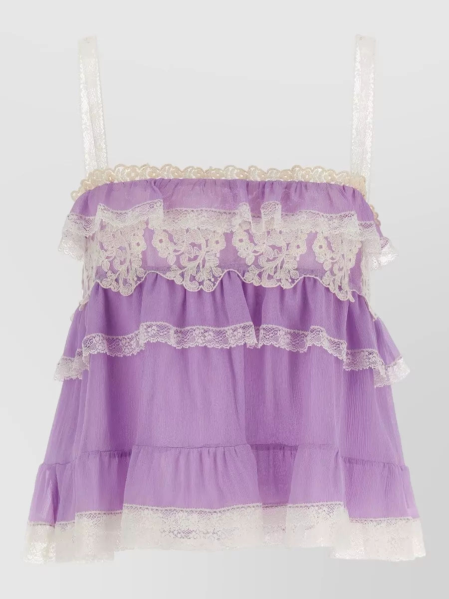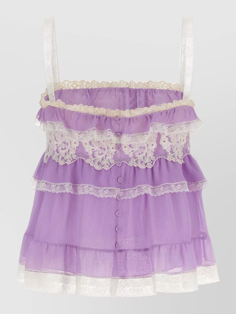 Alberta Ferretti silk ruffled sleeveless v-neck blouse