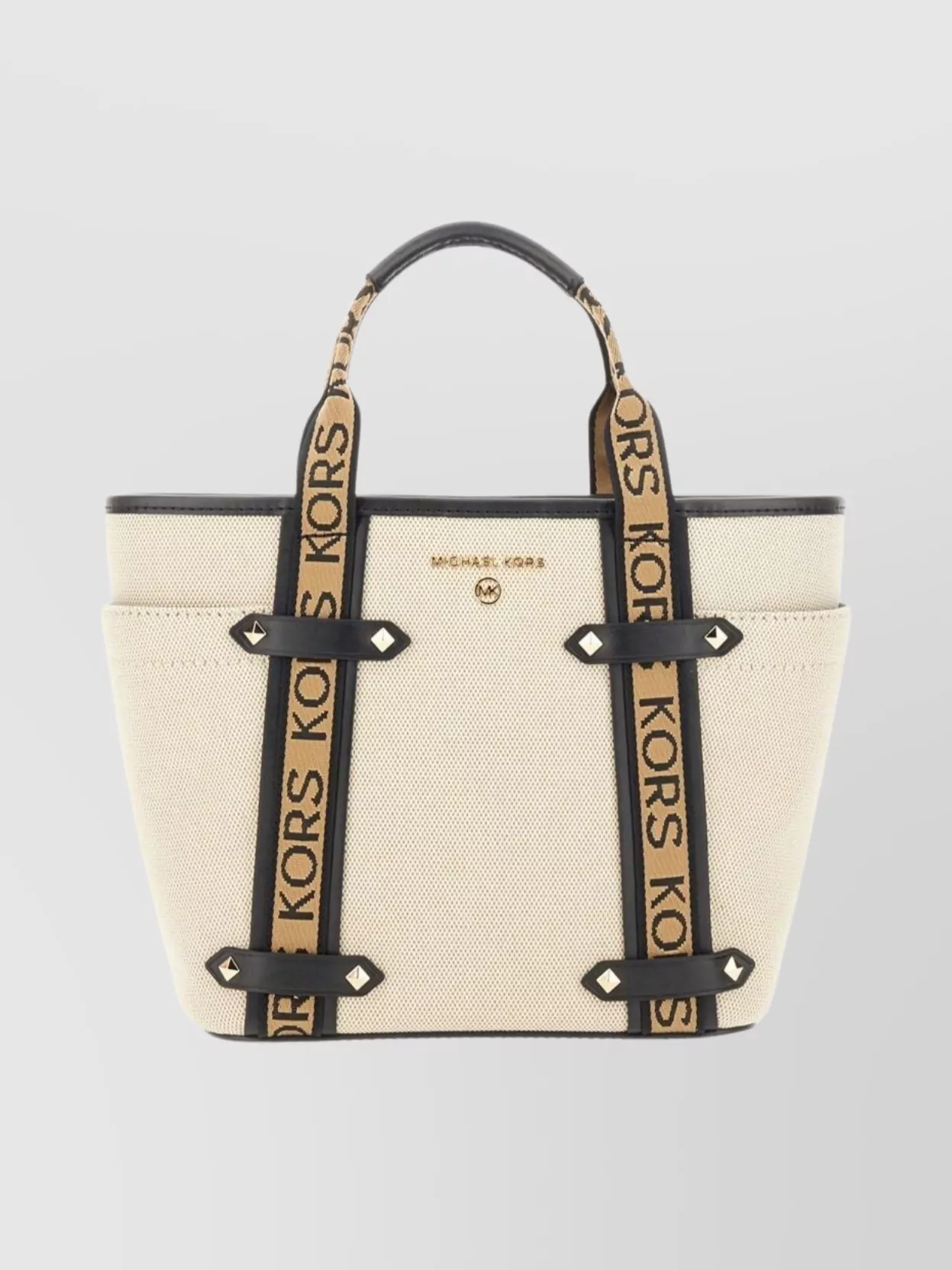 Michael Kors monogrammed tote bag with adjustable straps and gold-tone hardware