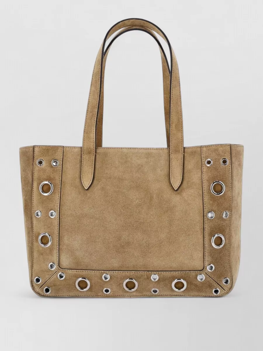 luxe suede tote bag with metal eyelets