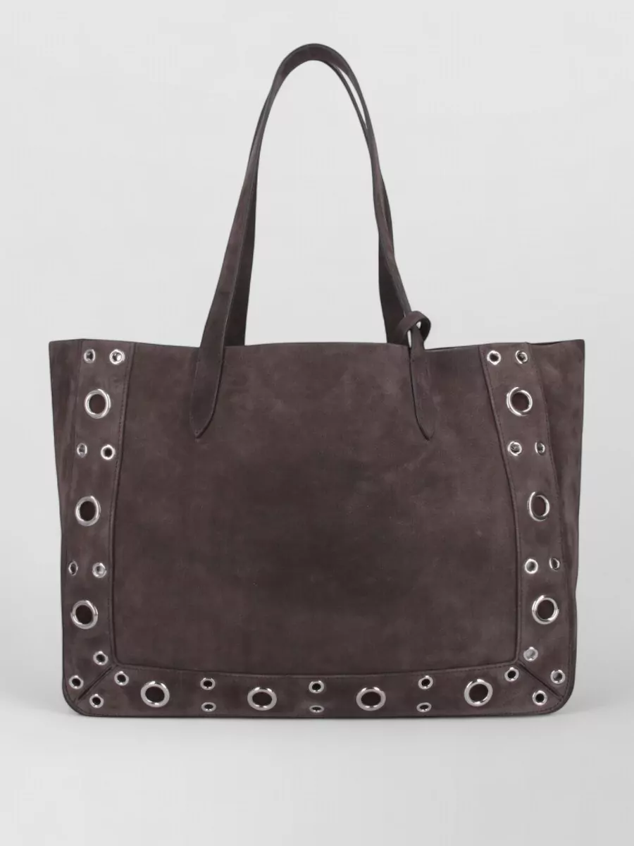 circular cutouts studded tote bag