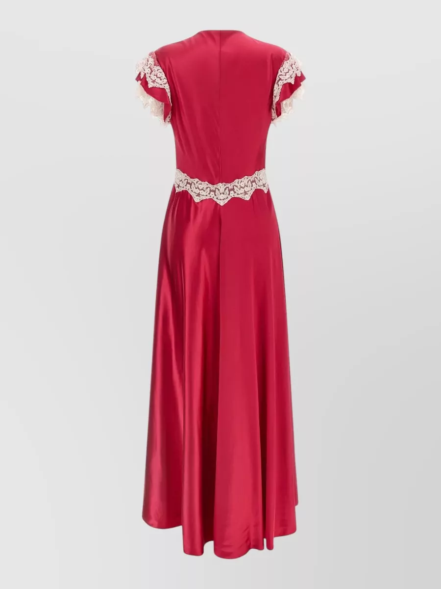 Alberta Ferretti satin dress lace inserts floor length v neckline