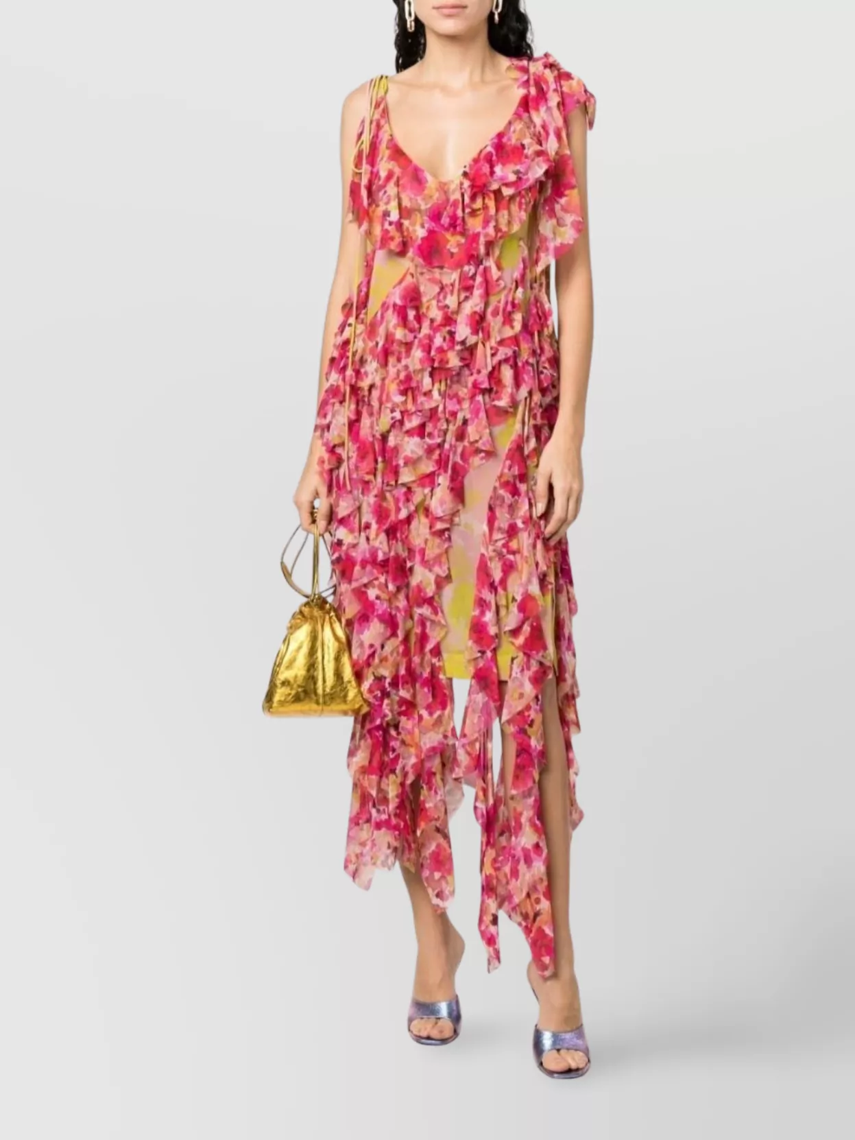 Dries Van Noten floral ruffled sleeveless dress with asymmetric hem