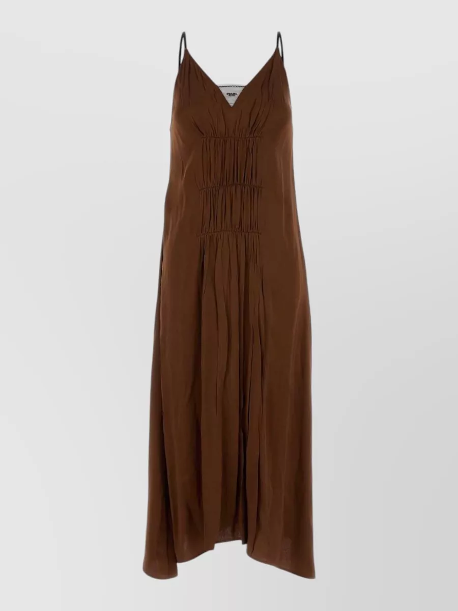 Prada wool cashmere relaxed-fit ribbed crew-neck flared midi dress