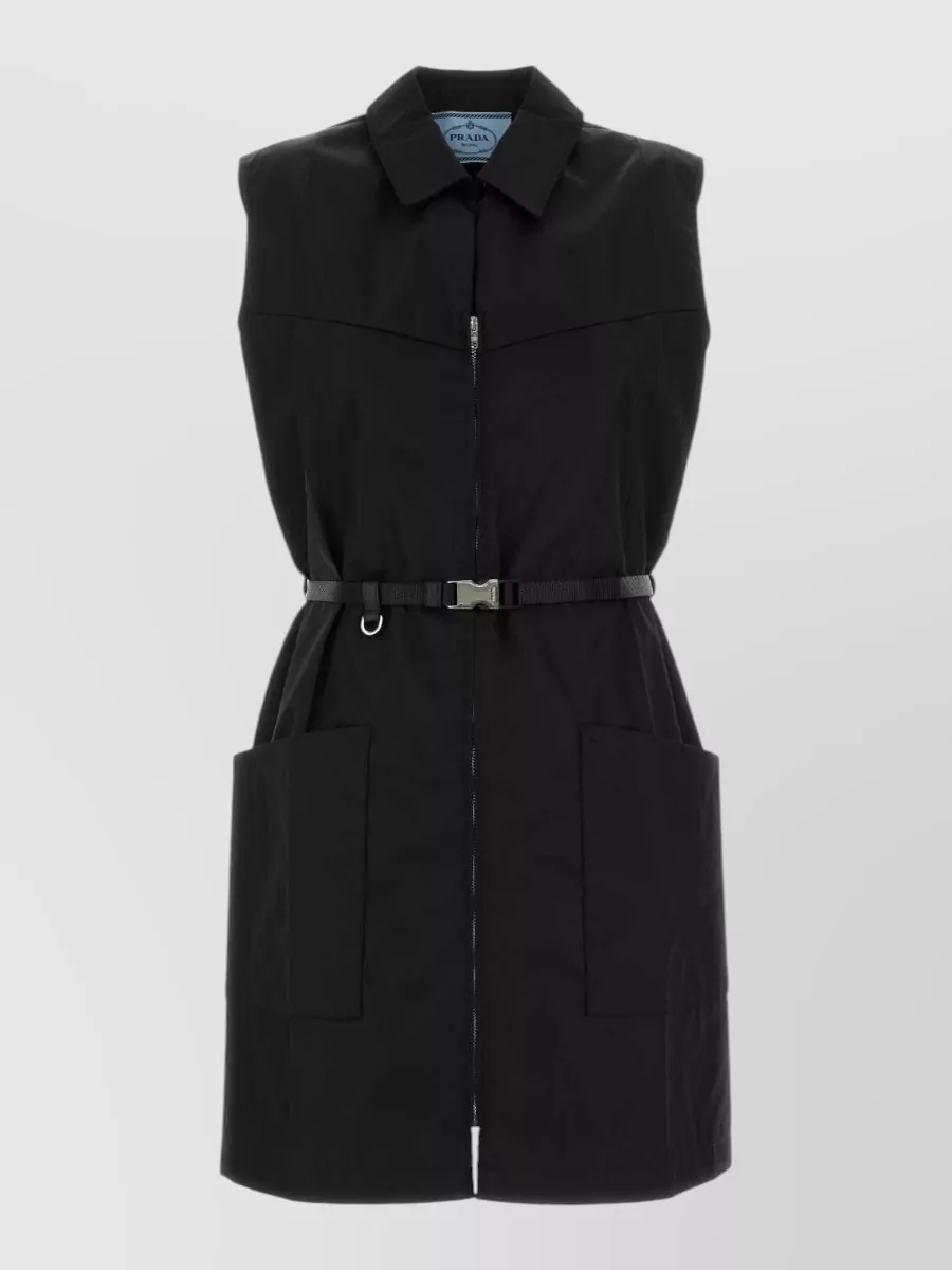Prada flared cuffs high neckline knee-length sheer sleeves