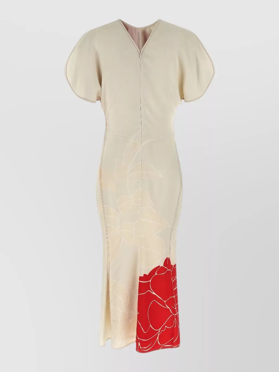 Victoria Beckham floral midi dress ruched waist short sleeves