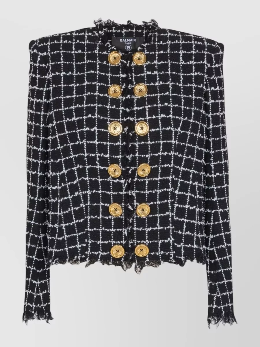 Balmain tweed jacket with frayed edges and gold-tone buttons