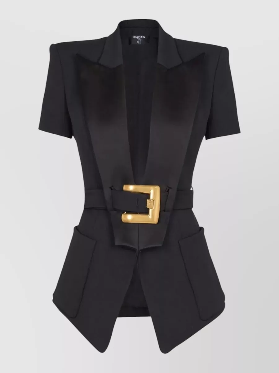 Balmain wool blazer with flap pockets and gold-tone buttons