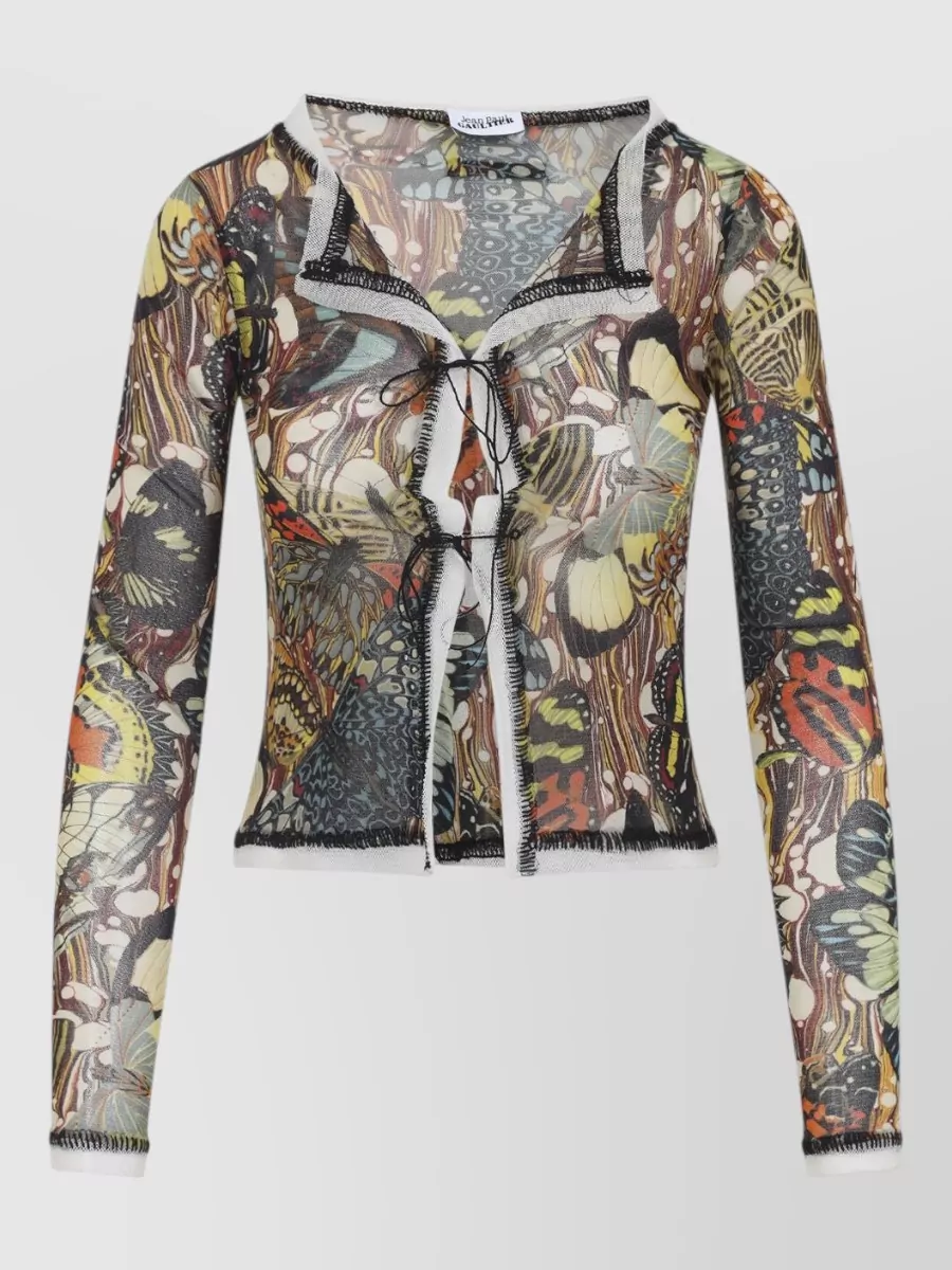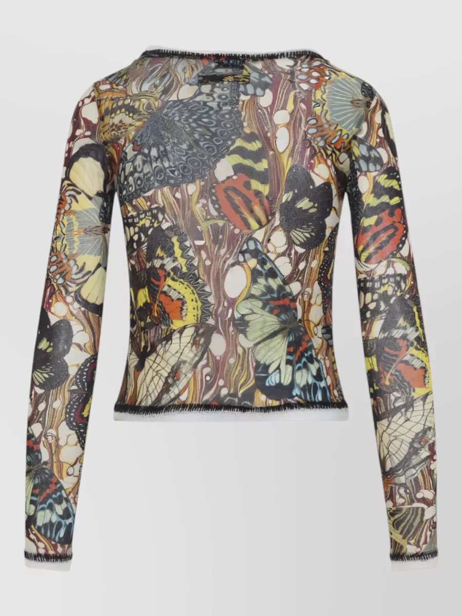 Jean Paul Gaultier printed long-sleeve sheer knitted top
